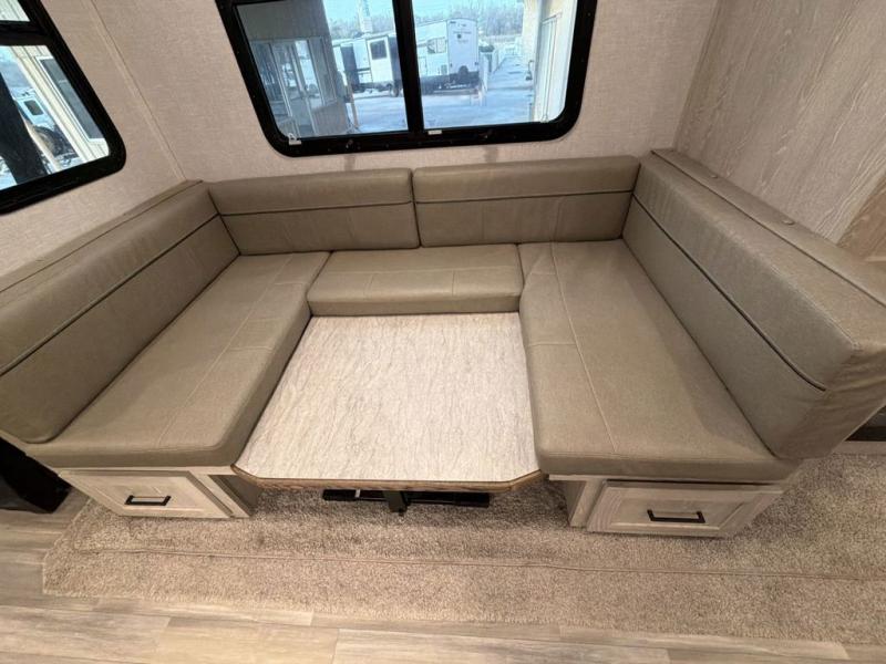 With each Forest River Flagstaff Classic fifth wheel or travel trailer you begin with a fully aluminum frame for lightweight towing, a vacuum laminated one piece roof and walls, an enclosed underbelly to be able to travel all year long, tinted bonded frameless windows for scenic views, and a fiberglass exterior with a high gloss finish. You will feel right at home with the comfortable furniture, the full kitchen amenities with solid surface countertops, the hidden hinge cabinet doors and residential full extension metal soft close drawer guides, plus the spacious interior and generous storage space in every Flagstaff Classic. Make your selection and enjoy the views either outdoors or inside through the many windows!