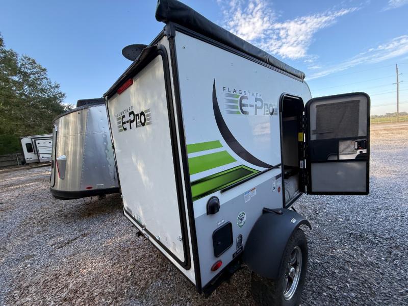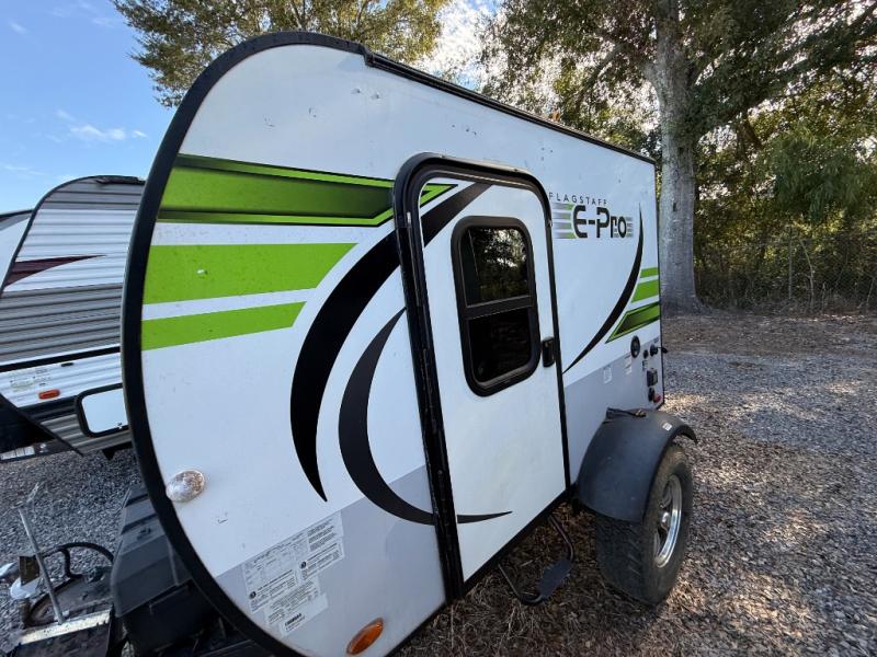 Forest River has custom designed these small and basic Flagstaff E-Pro travel trailers to meet the needs of anybody that has a small vehicle to tow. These units have a very light weight so that they are easy to take to the campsite. These models come with a 13,500 BTU low-profile A/C to keep your trailer cool, and their six-sided aluminum cage construction, frame-mounted stabilizer jacks, and vacuum laminated roof and walls will hold up through every adventure you throw their way. You even get a Sport Tire & Wheel Package which includes 15" Mud Rover radial tires and a lift kit. Come see all that these models have to offer!