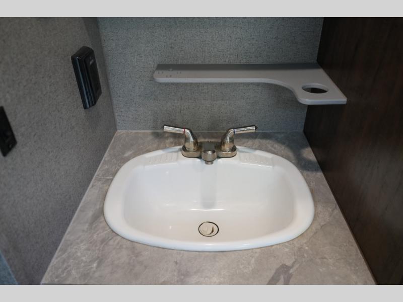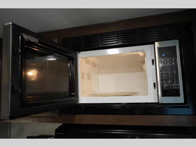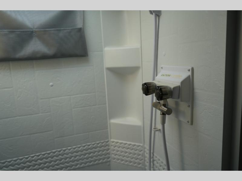 The Micro Lite line is engineered for durability and smooth towing with a fully aluminum frame, Torsion Axle with Rubber-Ryde suspension, enclosed underbelly, stabilizer jacks, and a diamond plate lower front panel. Practical touches like a power awning with LED lighting and rain dump, outside shower, antifreeze station, and 2" hitch receiver enhance every trip.