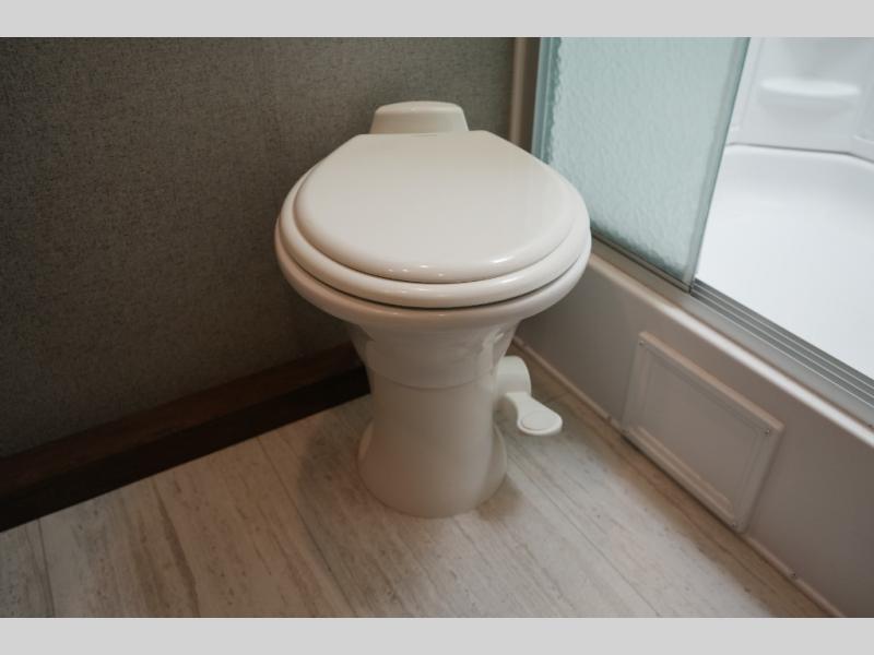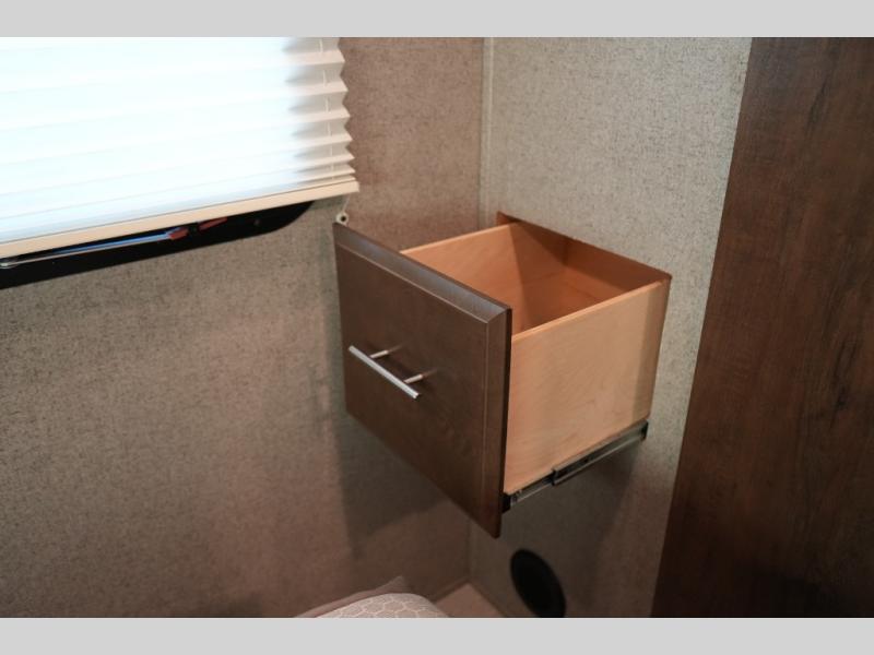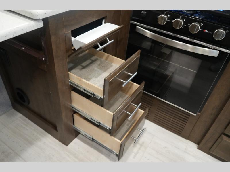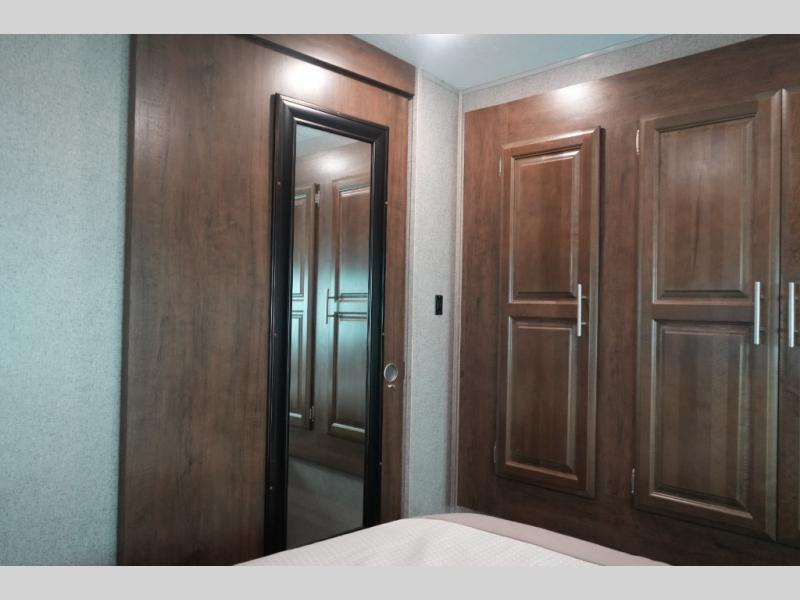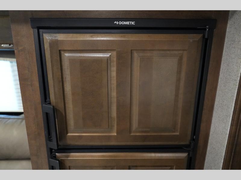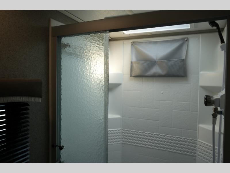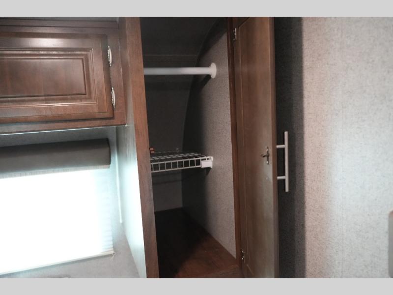 • Private Front Bedroom: Includes an RV queen bed and a wardrobe slide for expanded storage.