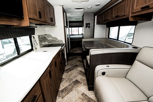 Tasteful design, a unique combination of style, and Certified Green by TRA certification is what you will find in every one of these Forest River Forester Classic Class C gas motorhomes! The split level design gives you maximum headroom and also still provides a pass-through storage area for your traveling needs. The crowned, laminated fiberglass roof and slide out awning toppers will keep you protected rain or shine. The large panoramic windows have black-out roller shades to let in the natural lighting during the day and aid in privacy at night, and the two large storage drawers in the dinette are perfect for storing a blanket and games. You can even choose to add the optional solar powered 12V charging system so you can head to your favorite off-grid locations too!
