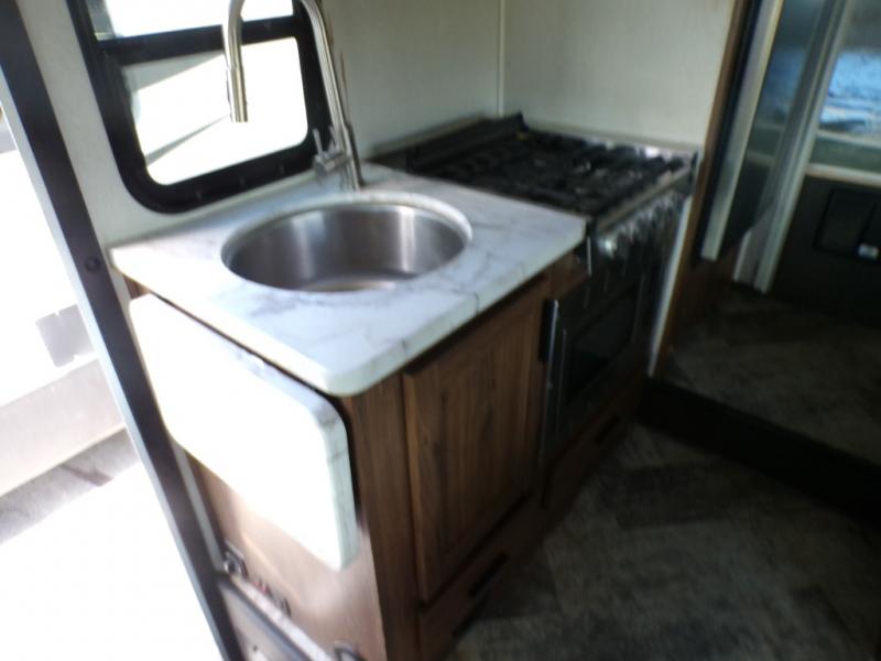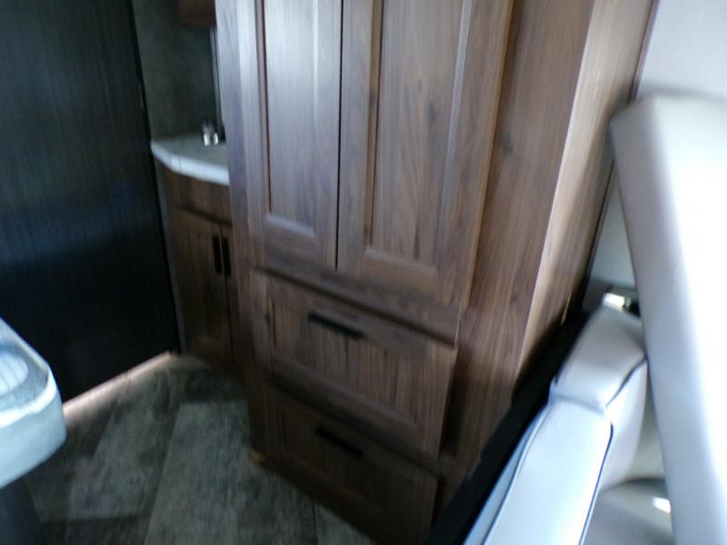 Whether you enjoy short weekend trips, long excursions or even tailgating at events, this coach will offer inside and outside features that give you comfort and convenience as well as style. The 15'6" power awning creates an outdoor living area to sit around on your camp chairs and visit with others, and the interior gives you a U-shaped dinette which can be utilized in many ways, plus there is a 60" x 80" bunk allowing you to offer guests a place to nap or sleep. The kitchen has full amenities including a convection microwave, and the rear offers a queen bed for you and your person to sleep, a private toilet and shower room, plus a bathroom sink just outside the door next to the wardrobe.