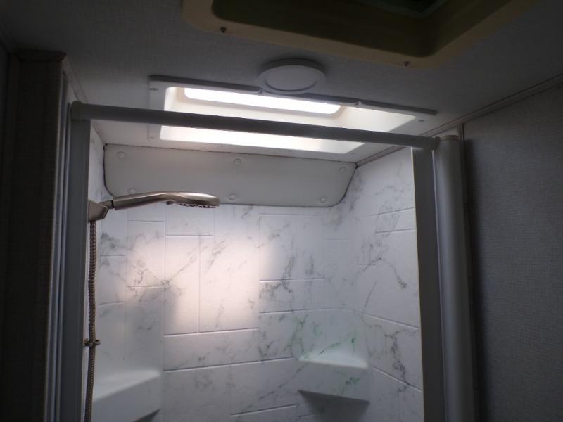 It won't be hard to find the perfect Certified Green by TRA certification and tastefully designed Forest River Forester LE Class C gas motorhome for you! The split level design gives you maximum headroom and also still provides a pass-through storage area for your traveling needs. The crowned, laminated fiberglass roof, the 2" thick gel coat sidewalls with lightweight composite waterproof material, and slide out awning toppers will keep you protected rain or shine. The large panoramic windows have black-out roller shades to let in the natural lighting during the day and aid in privacy at night, and the high pressure oxygen infused shower head aids in a relaxing shower each night. You can even choose to add the optional solar powered 12V charging system so you can head to your favorite off-grid locations too!