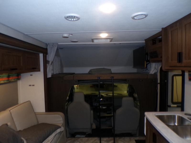 It won't be hard to find the perfect Certified Green by TRA certification and tastefully designed Forest River Forester LE Class C gas motorhome for you! The split level design gives you maximum headroom and also still provides a pass-through storage area for your traveling needs. The crowned, laminated fiberglass roof, the 2" thick gel coat sidewalls with lightweight composite waterproof material, and slide out awning toppers will keep you protected rain or shine. The large panoramic windows have black-out roller shades to let in the natural lighting during the day and aid in privacy at night, and the high pressure oxygen infused shower head aids in a relaxing shower each night. You can even choose to add the optional solar powered 12V charging system so you can head to your favorite off-grid locations too!