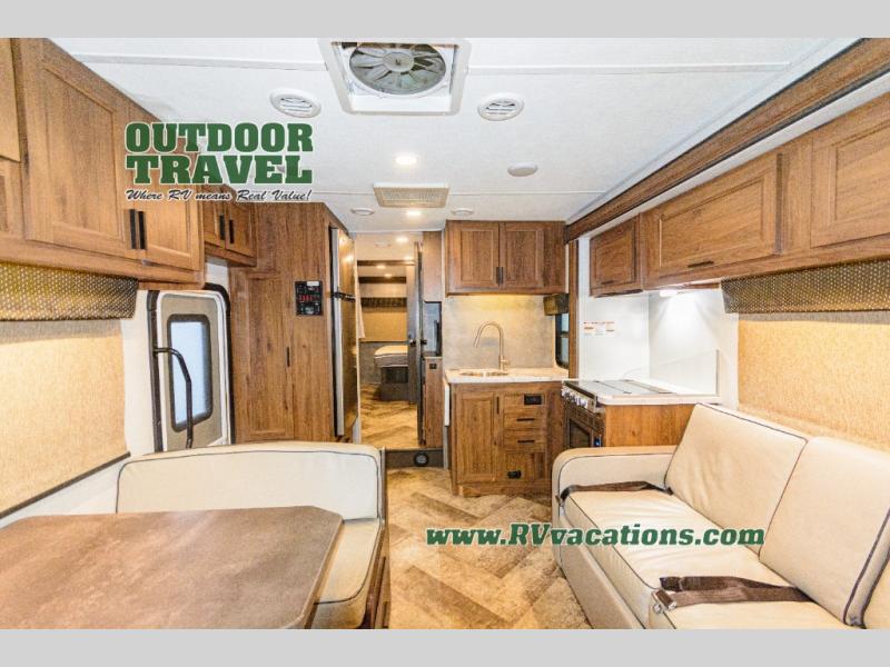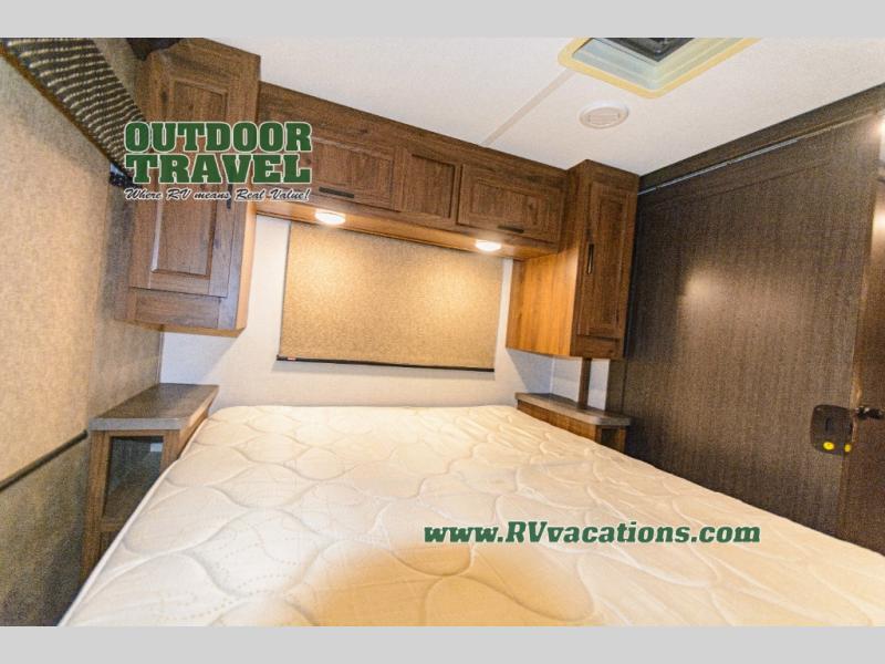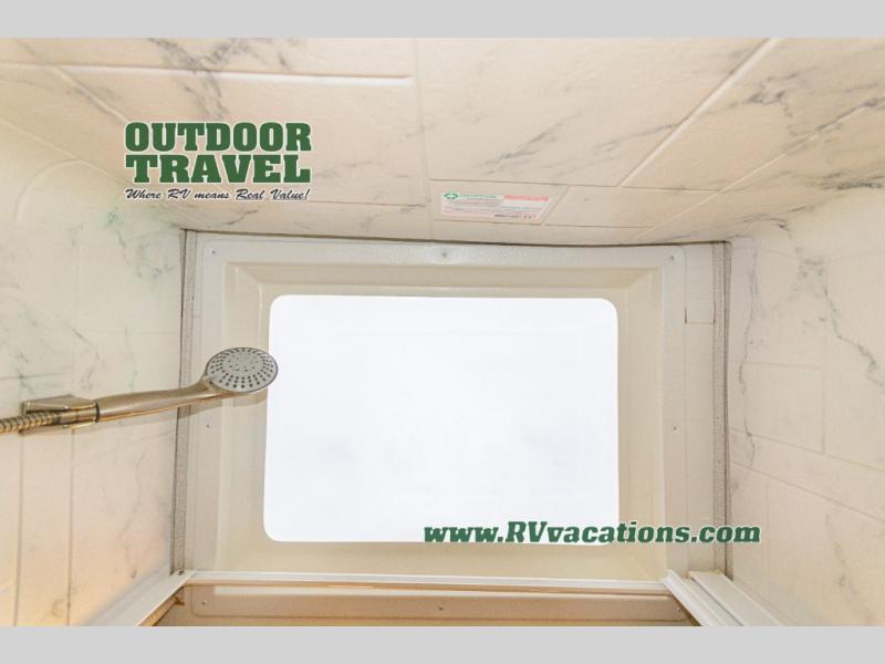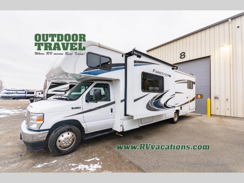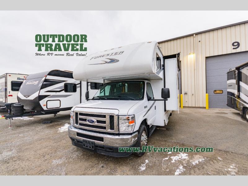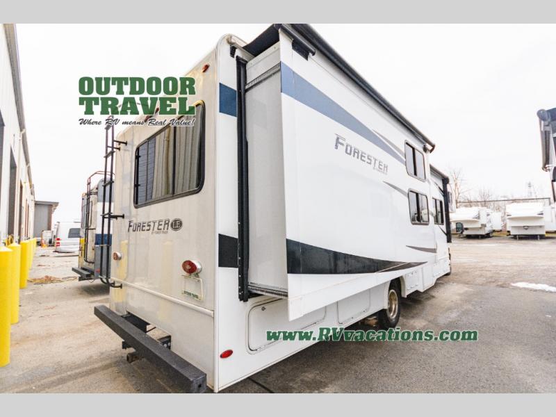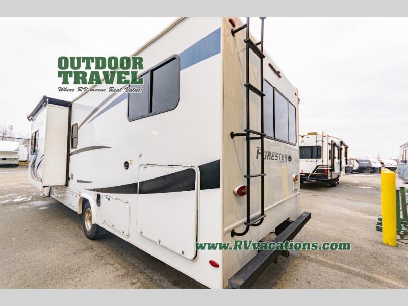 It won't be hard to find the perfect Certified Green by TRA certification and tastefully designed Forest River Forester LE Class C gas motorhome for you! The split level design gives you maximum headroom and also still provides a pass-through storage area for your traveling needs. The crowned, laminated fiberglass roof, the 2" thick gel coat sidewalls with lightweight composite waterproof material, and slide out awning toppers will keep you protected rain or shine. The large panoramic windows have black-out roller shades to let in the natural lighting during the day and aid in privacy at night, and the high pressure oxygen infused shower head aids in a relaxing shower each night. You can even choose to add the optional solar powered 12V charging system so you can head to your favorite off-grid locations too!