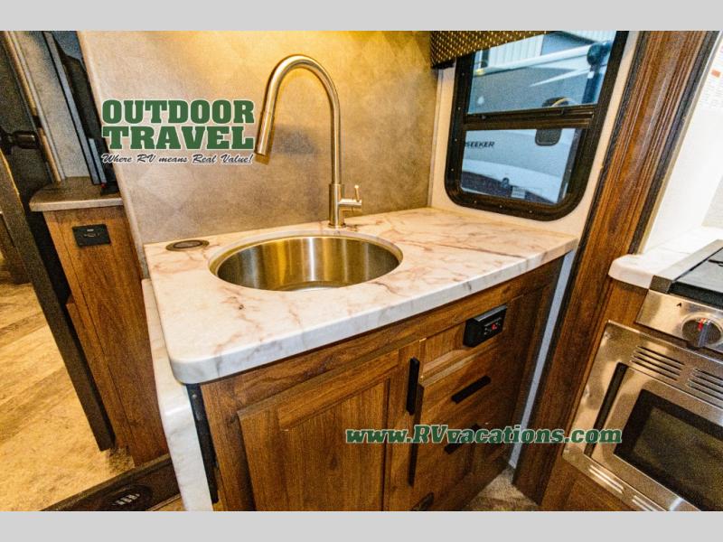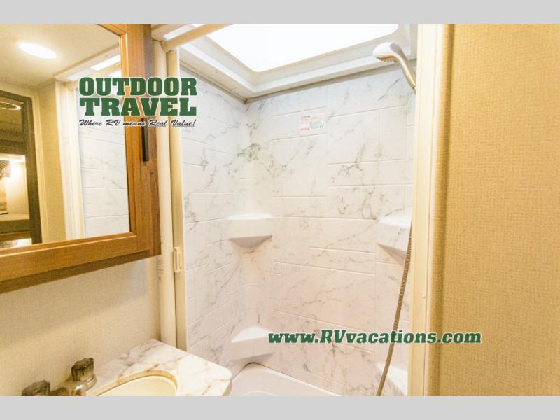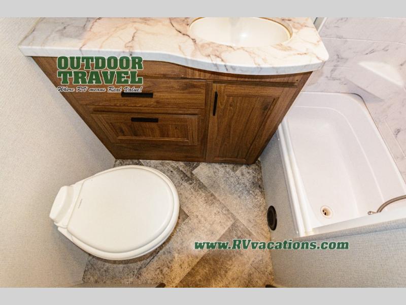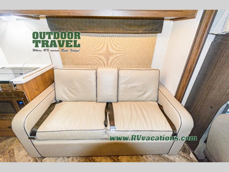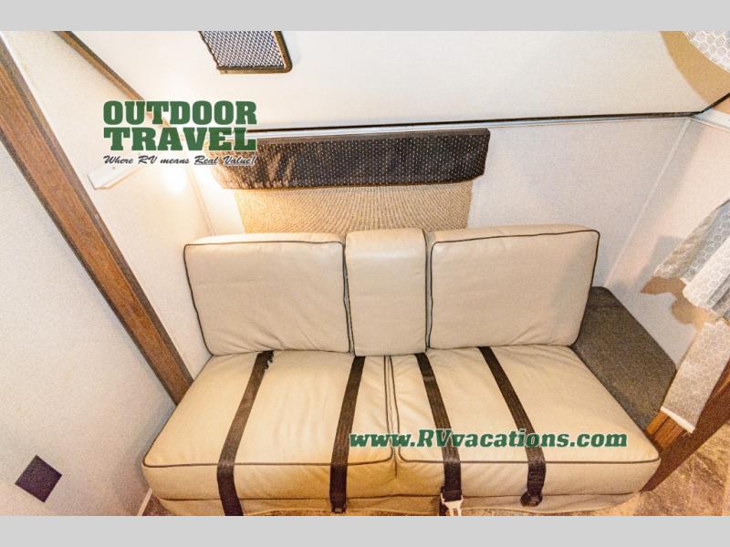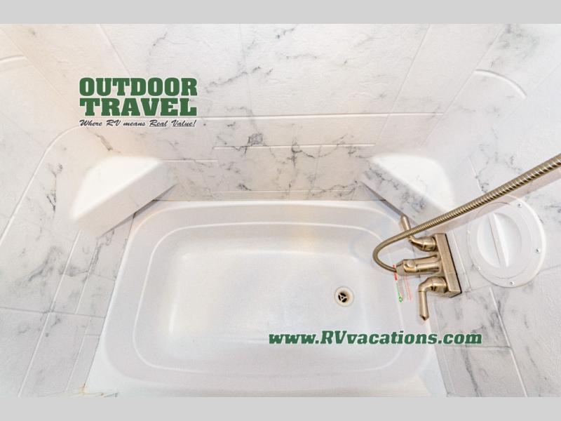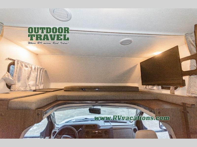 It won't be hard to find the perfect Certified Green by TRA certification and tastefully designed Forest River Forester LE Class C gas motorhome for you! The split level design gives you maximum headroom and also still provides a pass-through storage area for your traveling needs. The crowned, laminated fiberglass roof, the 2" thick gel coat sidewalls with lightweight composite waterproof material, and slide out awning toppers will keep you protected rain or shine. The large panoramic windows have black-out roller shades to let in the natural lighting during the day and aid in privacy at night, and the high pressure oxygen infused shower head aids in a relaxing shower each night. You can even choose to add the optional solar powered 12V charging system so you can head to your favorite off-grid locations too!
