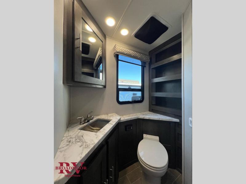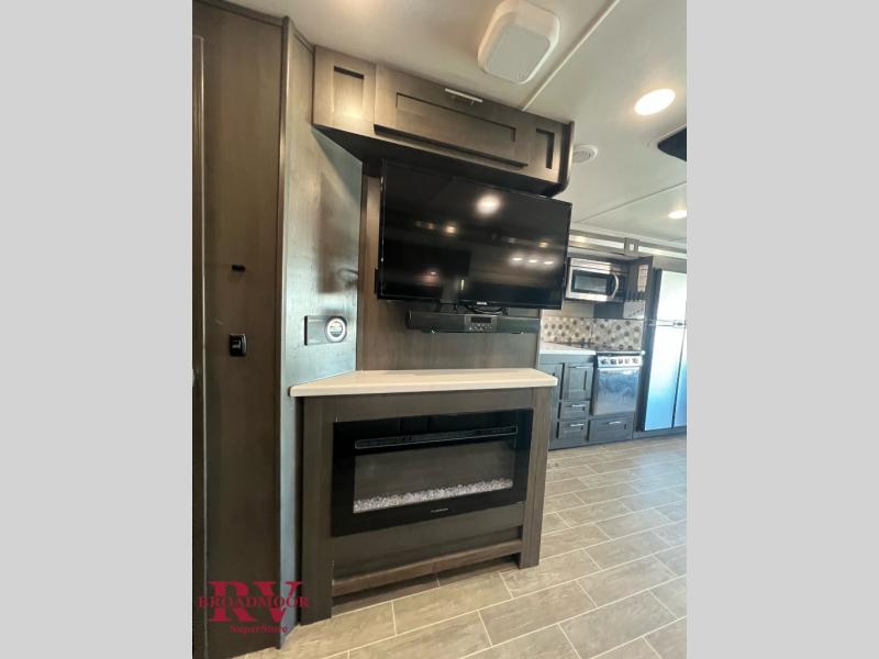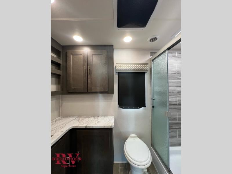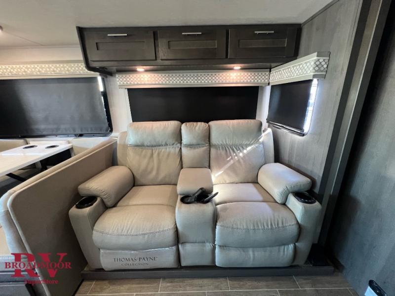 It's time for you to enjoy your road trips in true comfort! Check out this Forest River Georgetown 5 Series Class A gas motorhome. You won't be disappointed with all of the features it has to offer, like the full and half baths, the passenger work station, the 32" LED bedroom TV, and the 40" LED main TV. Another feature you are sure to love is the rear master suite. Here you will find access to your own private bathroom, a king bed with nightstands on either side, and even a wardrobe that is prepped for the optional washer/dryer. The luxurious features don't stop there! There is also a fireplace with theater seating directly across from it, and the seating even has cup holders so that you don't spill your drinks.