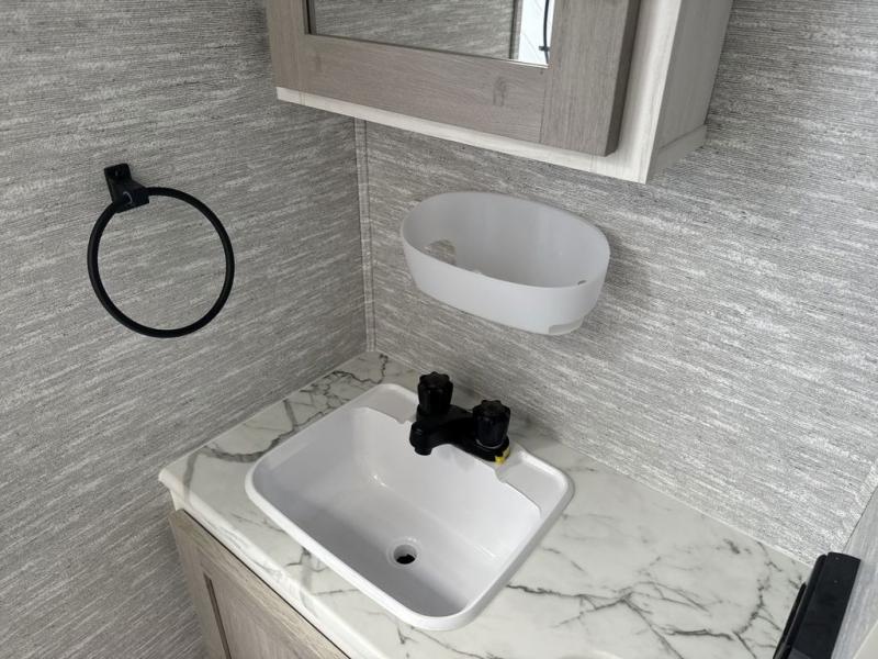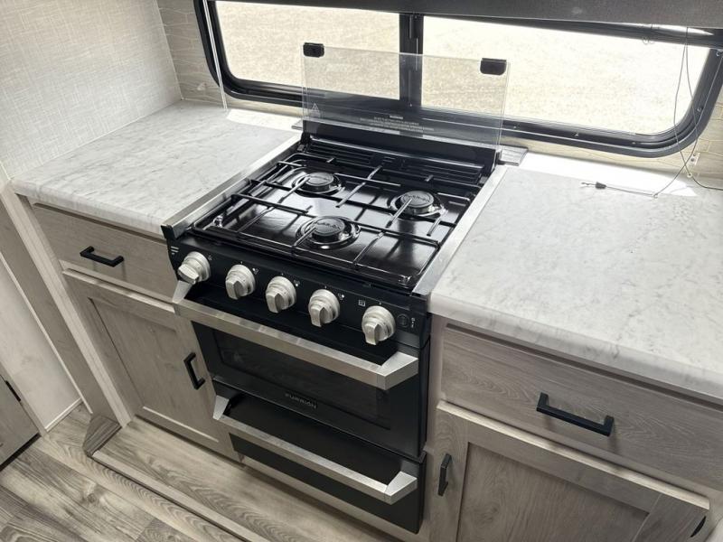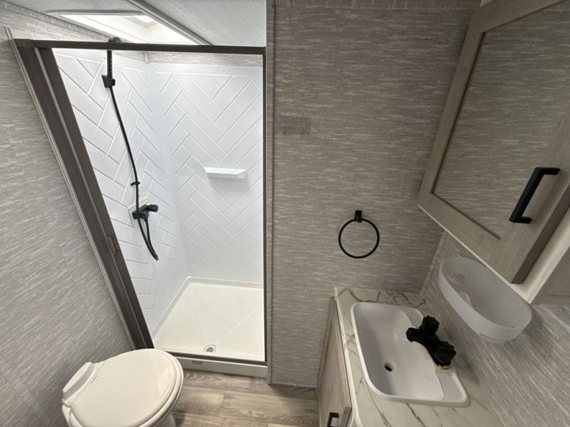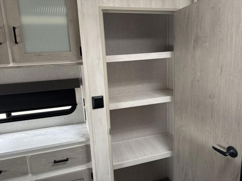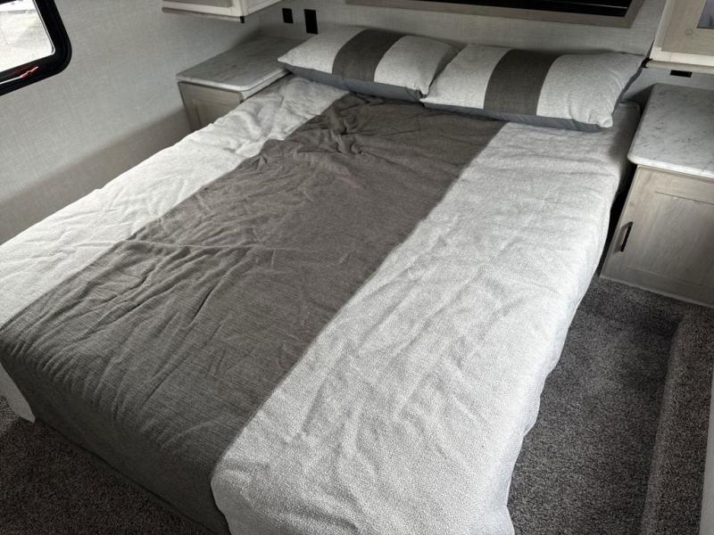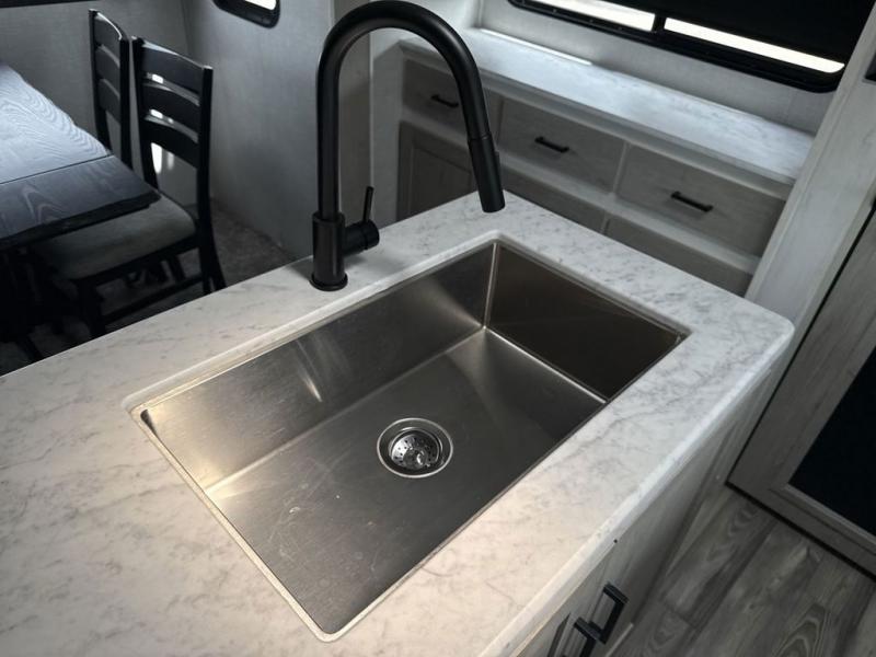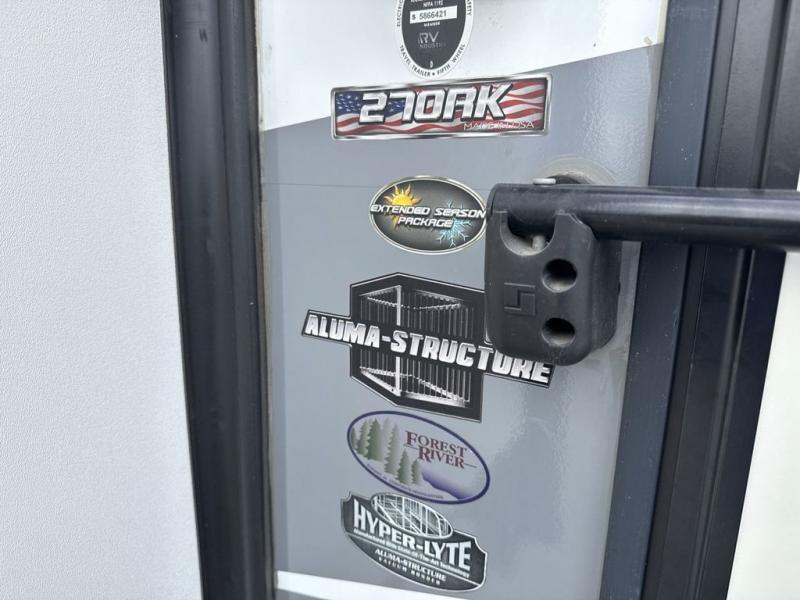 With each Impression fifth wheel by Forest River you appreciate the enclosed docking station with a Shurflo water pressure regulator, the outside shower, plus the one-touch automatic leveling system to make set-up a breeze. You are sure to turn heads as you travel to your destination with the custom exterior graphics package, and the marine grade outdoor speakers will keep you outside longer in the evenings. These models include congoleum residential linoleum, predrilled and screwed cabinetry, a kitchen skylight for added natural lighting, a gas strut assisted bed lift with storage, plus much more. The Elite Package will help simplify your camping experience with features such as, the industry leading 15K A/C, superior insulation with Astrofoil, a gel coat fiberglass front cap with an automotive windshield, and more!