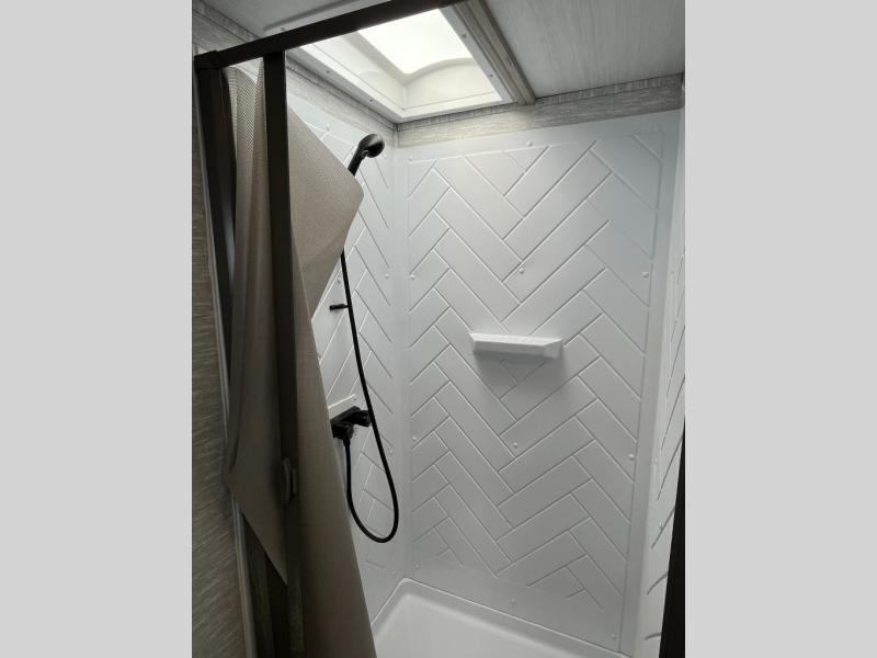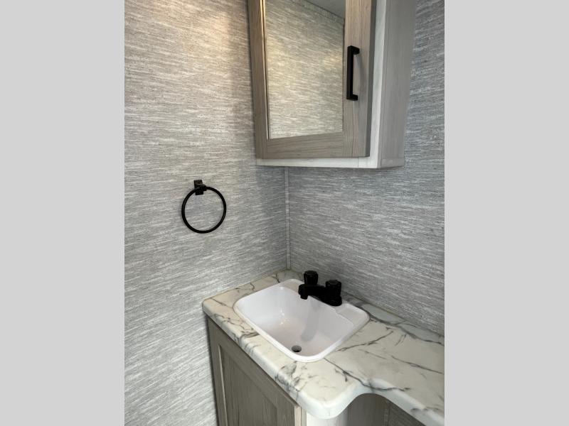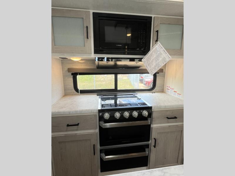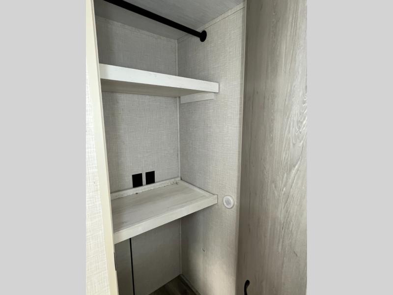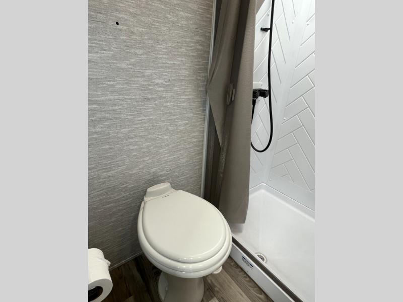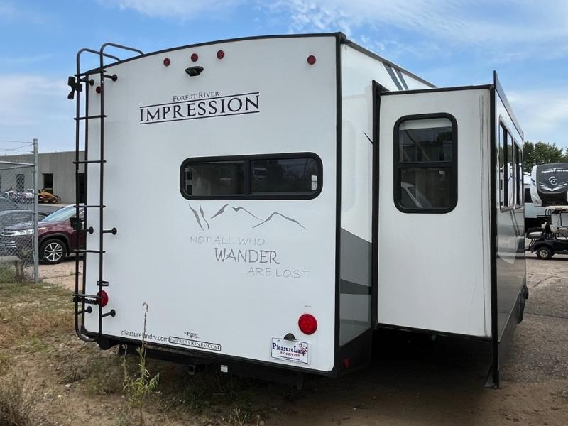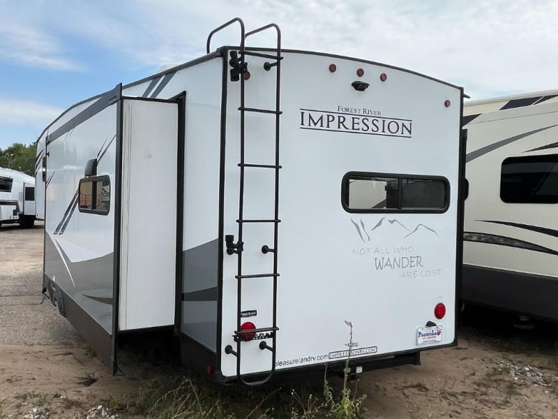 With each Impression fifth wheel by Forest River you appreciate the enclosed docking station with a Shurflo water pressure regulator, the outside shower, plus the one-touch automatic leveling system to make set-up a breeze. You are sure to turn heads as you travel to your destination with the custom exterior graphics package, and the marine grade outdoor speakers will keep you outside longer in the evenings. These models include congoleum residential linoleum, predrilled and screwed cabinetry, a kitchen skylight for added natural lighting, a gas strut assisted bed lift with storage, plus much more. The Elite Package will help simplify your camping experience with features such as, the industry leading 15K A/C, superior insulation with Astrofoil, a gel coat fiberglass front cap with an automotive windshield, and more!
