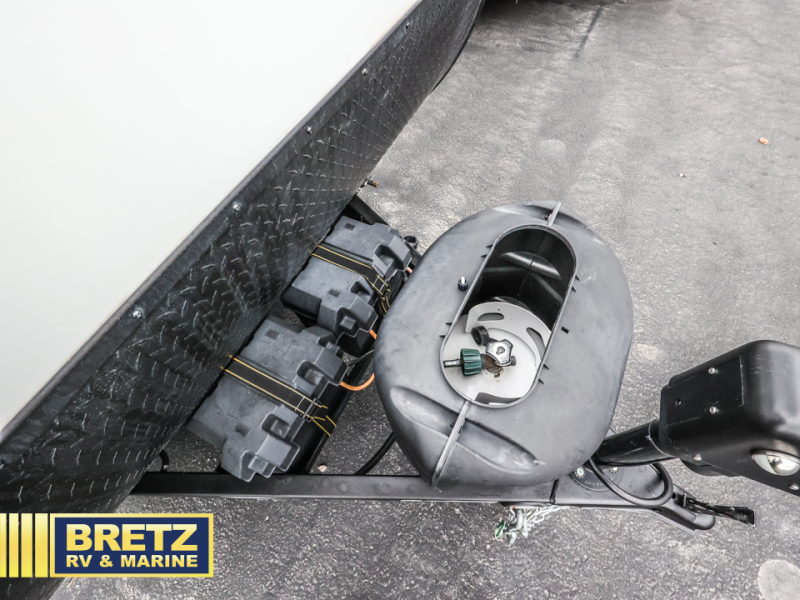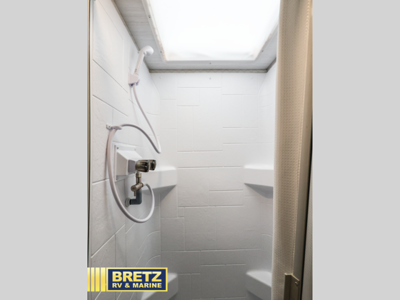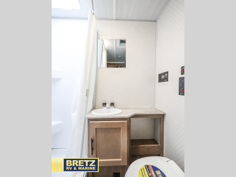 Just under 3,500 pounds, this travel trailer includes an aluminum cage construction and roof-mounted heavy-duty solar prep, so you can explore the unknown with your spouse, friend or family with sleeping space for three to four tired campers! Dine at the 41" x 74" dinette up front, and make warm meals in the kitchen which includes a cooktop, a pantry, and a 5-cu. ft. refrigerator. The full bathroom will keep everyone clean and ready for more adventures, and you will also appreciate the abundant storage throughout as well as the exterior pass-through compartment in back.