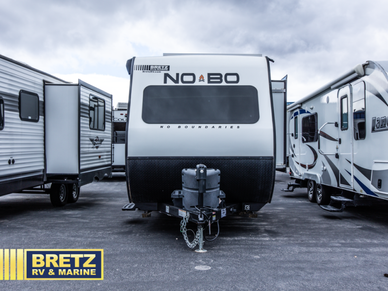 The No Boundaries travel trailers and toy haulers by Forest River are easy to tow by a four or six-cylinder vehicle because they range in weights from under 2,000 pounds up to 5,000 pounds. Depending on the model you choose, you will find independent torsion suspension with industry-leading cargo capacity, six-lug satin black aluminum wheels and All-Terrain tires, frame-mounted walkable steel fenders, a laminated Azdel exterior, a Cold Weather package, and a fully walkable 500-LB roof with PVC roofing membrane. The interior offers an exclusive central vacuum system plus much more! You will find a NOBO in a 10 Series, 16 Series or a 19 Series to fit your extreme lifestyle, so make your selection today!