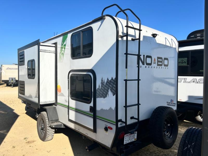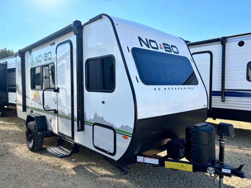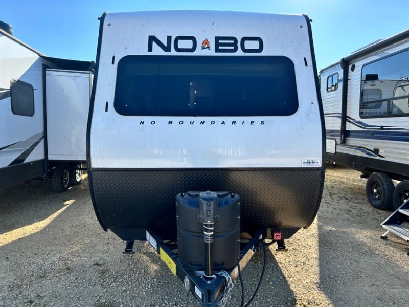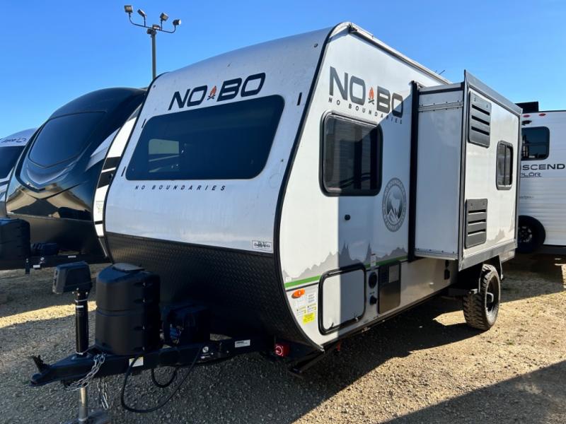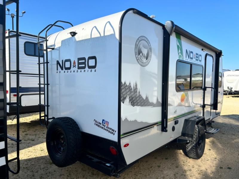 The No Boundaries travel trailers and toy haulers by Forest River are easy to tow by a four or six-cylinder vehicle because they range in weights from under 2,000 pounds up to 5,000 pounds. Depending on the model you choose, you will find independent torsion suspension with industry-leading cargo capacity, six-lug satin black aluminum wheels and All-Terrain tires, frame-mounted walkable steel fenders, a laminated Azdel exterior, a Cold Weather package, and a fully walkable 500-LB roof with PVC roofing membrane. The interior offers an exclusive central vacuum system plus much more! You will find a NOBO in a 10 Series, 16 Series or a 19 Series to fit your extreme lifestyle, so make your selection today!
