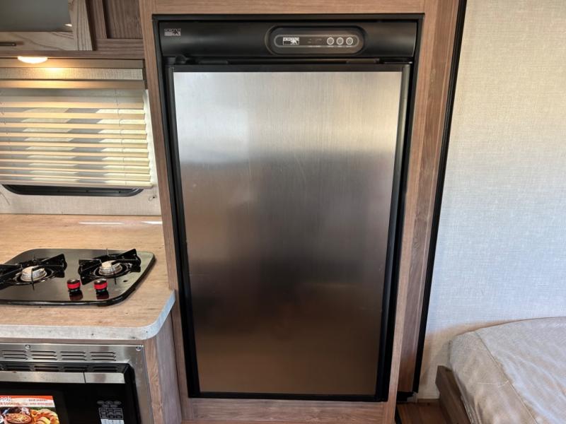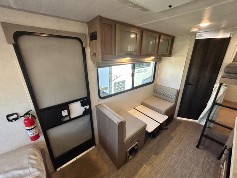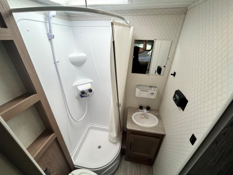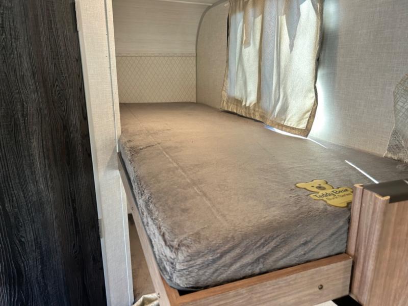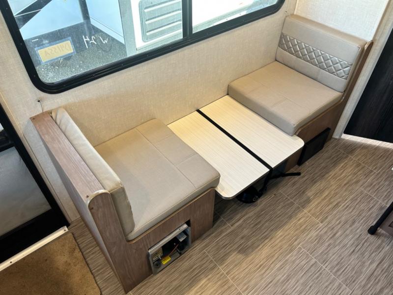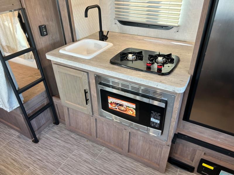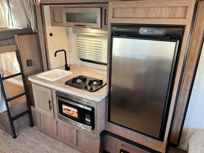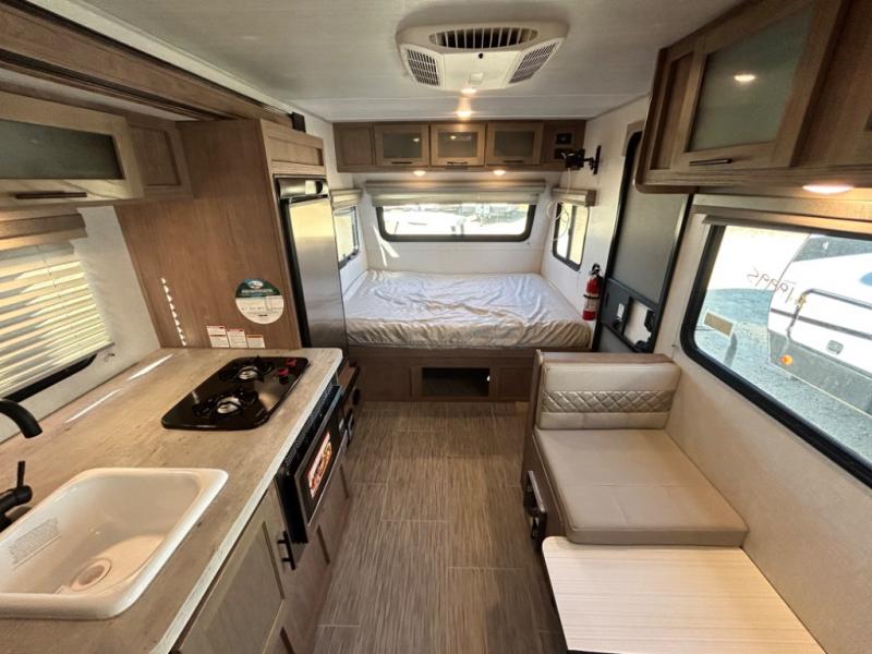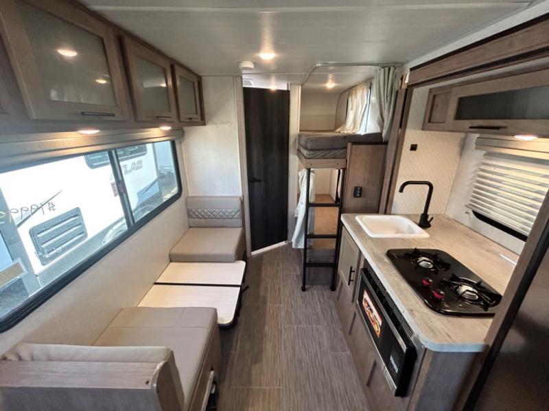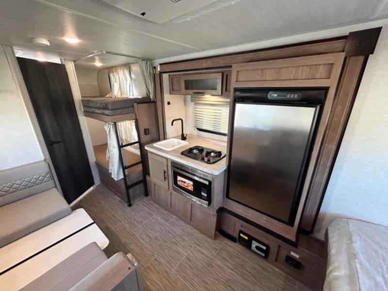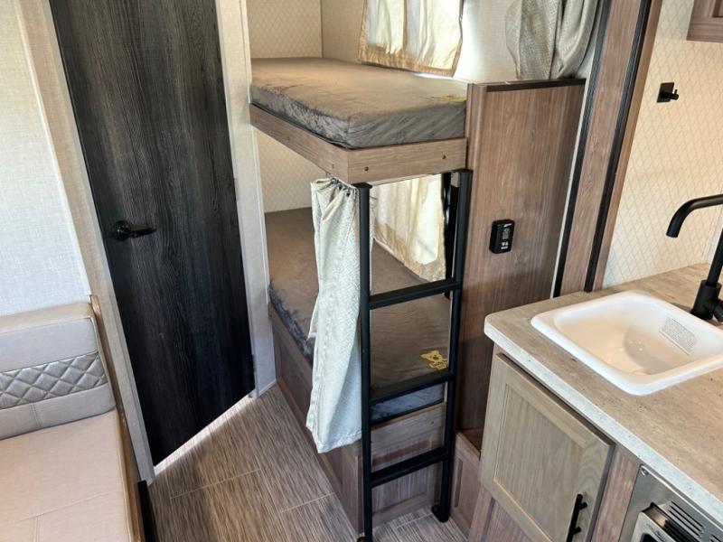 Have you been searching for an adventure trailer that is just under 3,500 pounds and comes with bunk beds? Your search is over when you snatch up this No Boundaries travel trailer! The bottom bunk even includes flip-up adventure storage to stow luggage, bicycles, and lawn chairs safely inside through the exterior door before you start traveling. The booth dinette seats two and sleeps one, plus the full bathroom offers a space-saving radius shower to stay refreshed for whatever is next. And, the 11' awning provides an outdoor living area protected from the sun.