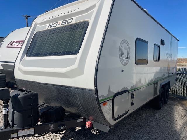 The No Boundaries travel trailers and toy haulers by Forest River are easy to tow by a four or six-cylinder vehicle because they range in weights from under 2,000 pounds up to 5,000 pounds. Depending on the model you choose, you will find independent torsion suspension with industry-leading cargo capacity, six-lug satin black aluminum wheels and All-Terrain tires, frame-mounted walkable steel fenders, a laminated Azdel exterior, a Cold Weather package, and a fully walkable 500-LB roof with PVC roofing membrane. The interior offers an exclusive central vacuum system plus much more! You will find a NOBO in a 10 Series, 16 Series or a 19 Series to fit your extreme lifestyle, so make your selection today!