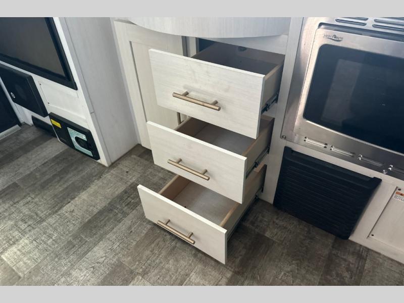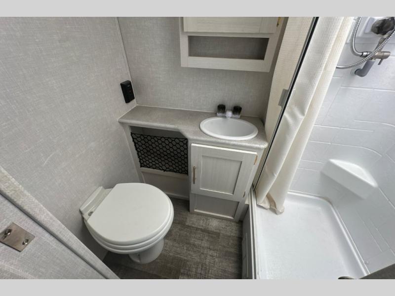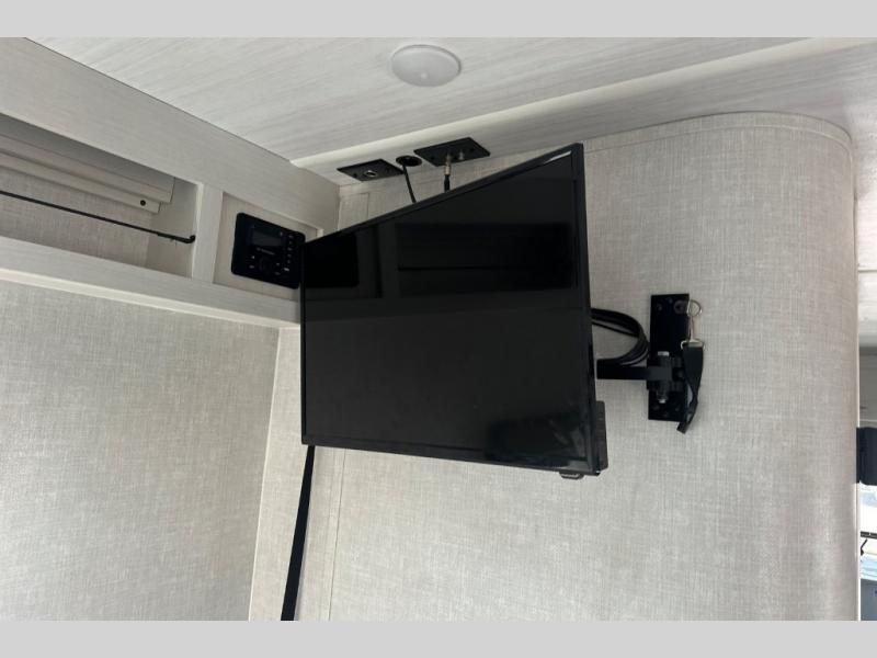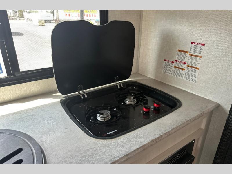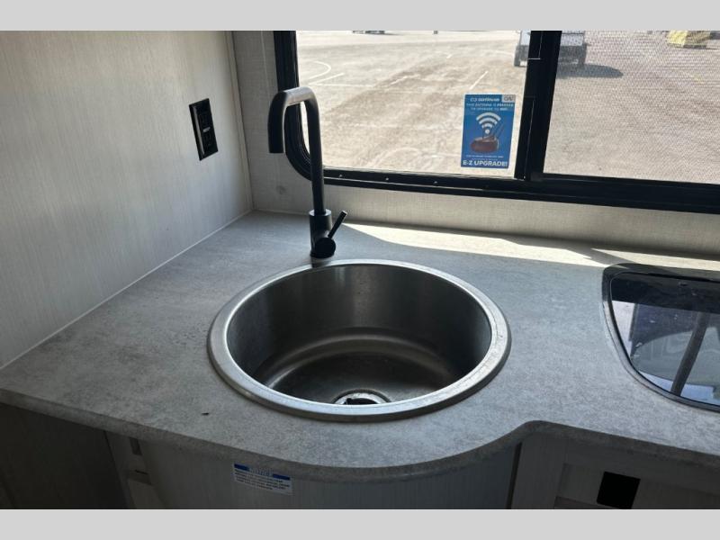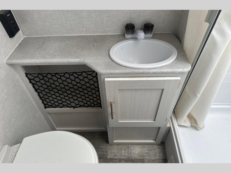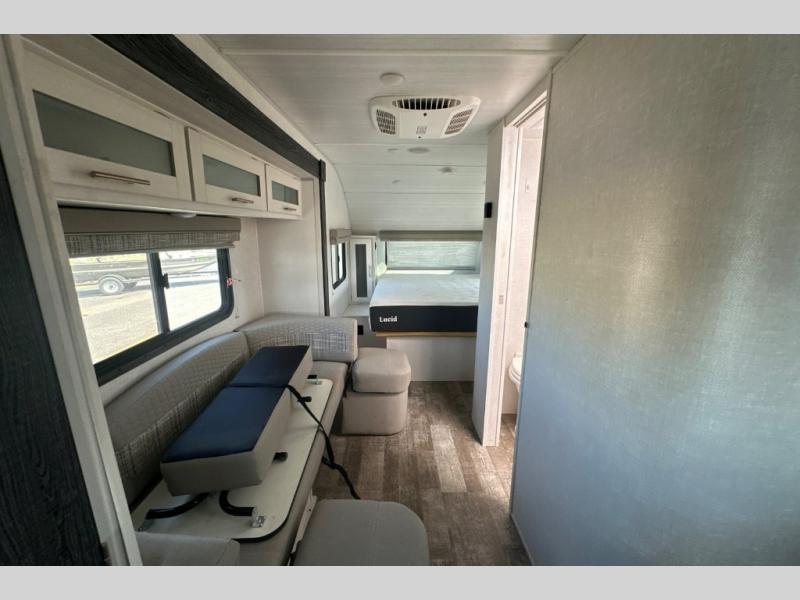 You are going to love waking up every camping weekend in this cute R-Pod travel trailer which features plenty of space and loads of storage for all of your things. The rear kitchen is unique and provides a large window above the stove top and sink so that you can feel like you are cooking right outdoors even on a day when the weather isn't perfect. The U-shaped dinette within the slide out provides more interior walking space, and it can easily be turned into an extra sleeping spot if needed. The front RV queen bed will allow you to wake refreshed for each new day of adventure, and you will appreciate the windows on each side for cross ventilation and a great view of your surroundings.