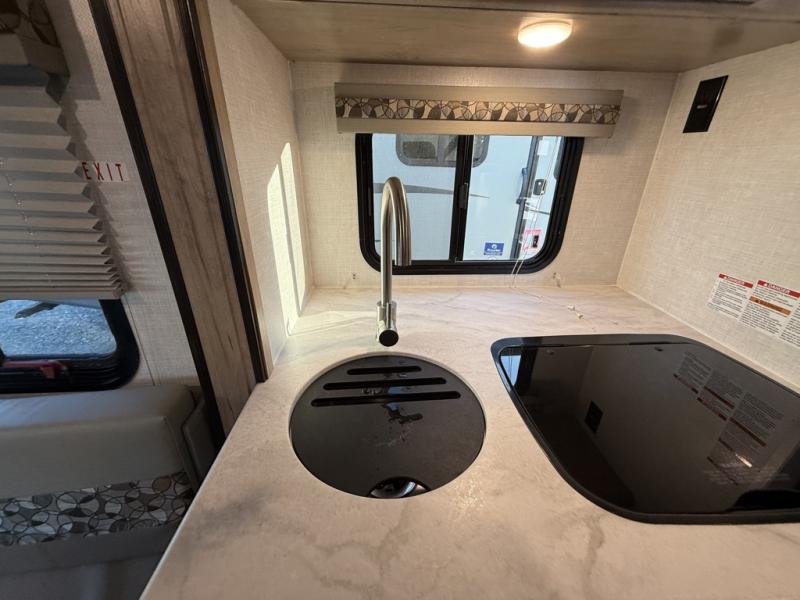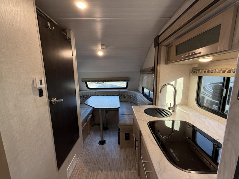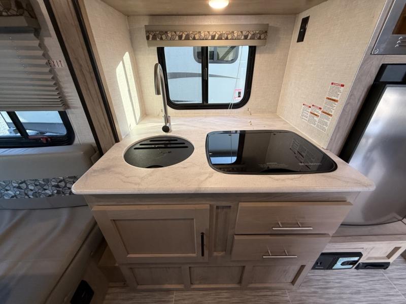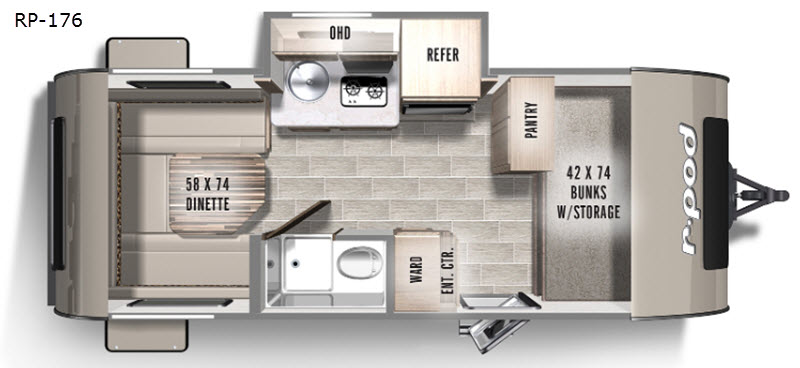 Whether you are headed out to a nearby campground or on a more extravagant excursion, this R-Pod travel trailer is ideal for you! After you set up camp, then come enjoy the spacious interior thanks to the slide out. This unit also has a refrigerator, a two-burner cooktop and a convection microwave to make a family meal. Sleeping space can be found on the bunk beds, plus the U-shaped dinette converts into additional sleeping space, if needed. With an entertainment center and an LED TV, you can enjoy watching a show before bedtime. And you can store your outdoor gear in the pass-through storage.