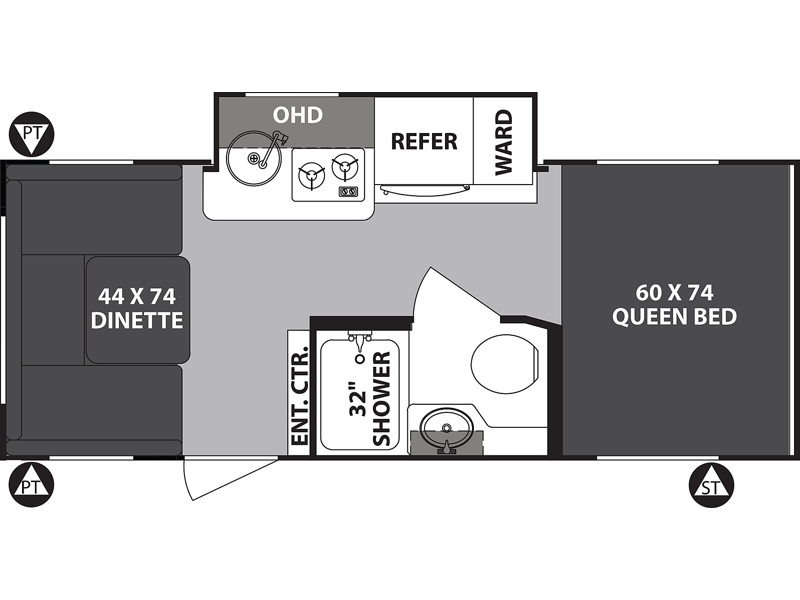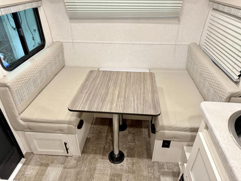 For the couple who is ready to camp anytime and anywhere, you will love how easy it is to travel with this R-Pod travel trailer. You can easily set up the single slide to give you more room to move about. Within this slide, you will find the kitchen amenities, which include a two-burner cooktop, convection microwave and a refrigerator. You can enjoy your meals at the U-shaped dinette, and this furniture can double as a sleeping space, if needed. Along the front is an RV queen bed where you can rest up for another day of fun and adventure. With all of the exterior storage, you can bring along all of your necessary camping items and more!