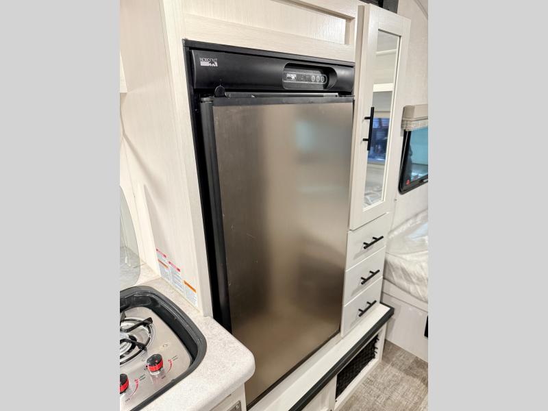 The Forest River R-Pod travel trailer is an excellent choice for lightweight towing and accommodating amenities! There are some enticing inclusions for the R-Pod, like the Azdel composite panels that will completely withstand water damage and the central vacuum system that will make it easy to clean up messes. The R-Pod has the largest refrigerator in its class, and there is also a black glass entrance door that enhances the sleek look of the stylish exterior. The R-Pod has been prepped for a solar panel and a back-up camera, and it also comes with an independent suspension torsion axle for a smooth ride to the campsite.