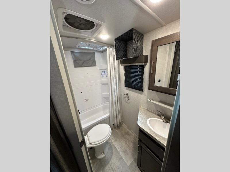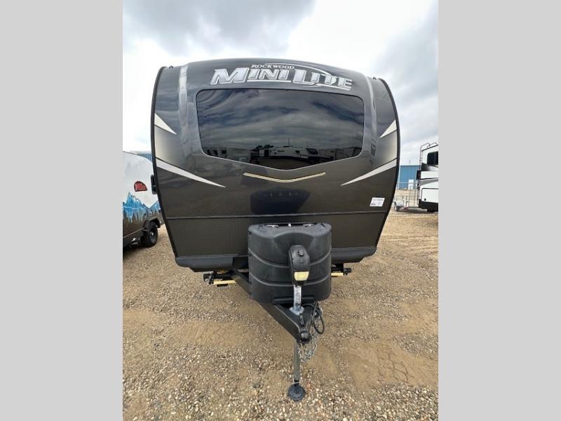 The easy-to-tow, lightweight Rockwood Mini Lite travel trailers by Forest River are the adventurer's dream come true. The six sided aluminum frame, fully laminated one-piece walkable roof, and painted fiberglass front cap with clear coat will provide a strong, durable unit that will last through years of memories and fun. You will appreciate many convenient features, such as the Maxxair fan with a cover, the back-up camera prep, and the Teton All In One WiFi booster with LTE prep and an antenna if you need to get some work done while you're away from home. Each model includes hardwood cabinet doors, a monitor panel switch with the OneControl app, and solid surface kitchen countertops. You will stay entertained on those rainy days with the multizone stereo with DVD, CD, AM/FM and Bluetooth control, and there are outdoor speakers so you will be the life of the campground. Choose your favorite Rockwood Mini Lite layout today!