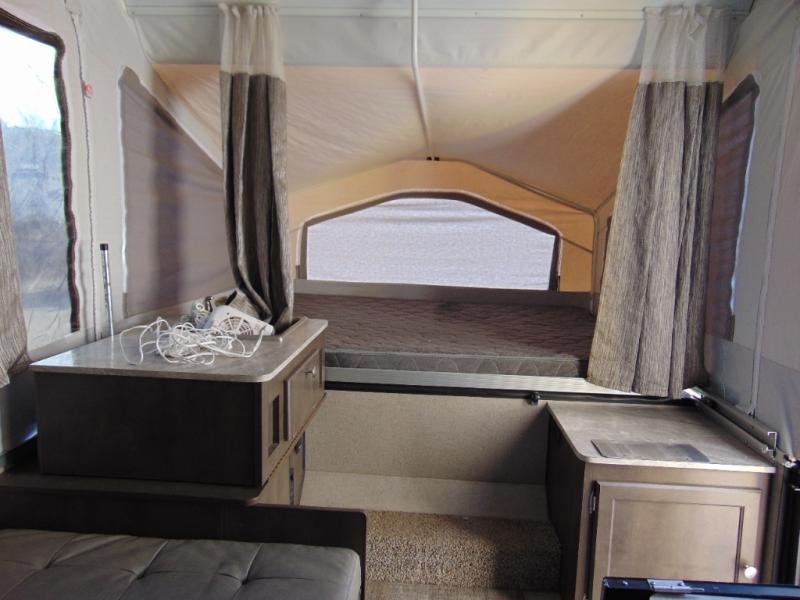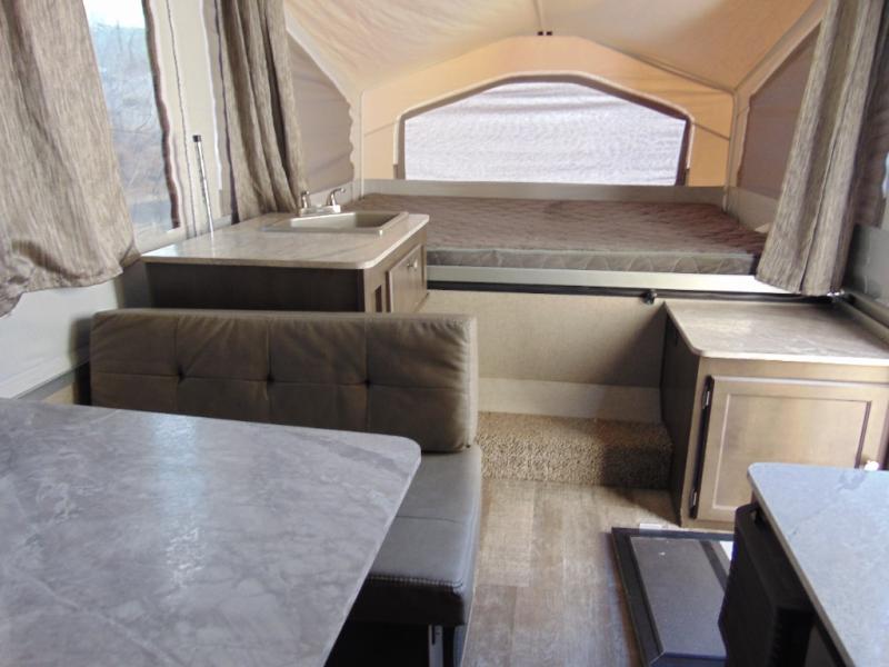 With any Forest River Rockwood Limited (LTD) Series, the construction of the folding pop-up camper includes a fiberglass vacuum bonded radius roof with no center seam, a power coated tubular steel frame, powered coated rafter poles and bed bows, and full perimeter aluminum bed frames. Each includes Leaf spring axles, solar prep on the frame, two stabilizer jacks with sand pads, and nitrogen filled tires. The interior offers wood-look flooring for easy care, heated mattress bunk ends, residential style cabinet doors, and a furnace for those cooler camping trips. Choose your favorite LTD Series today!