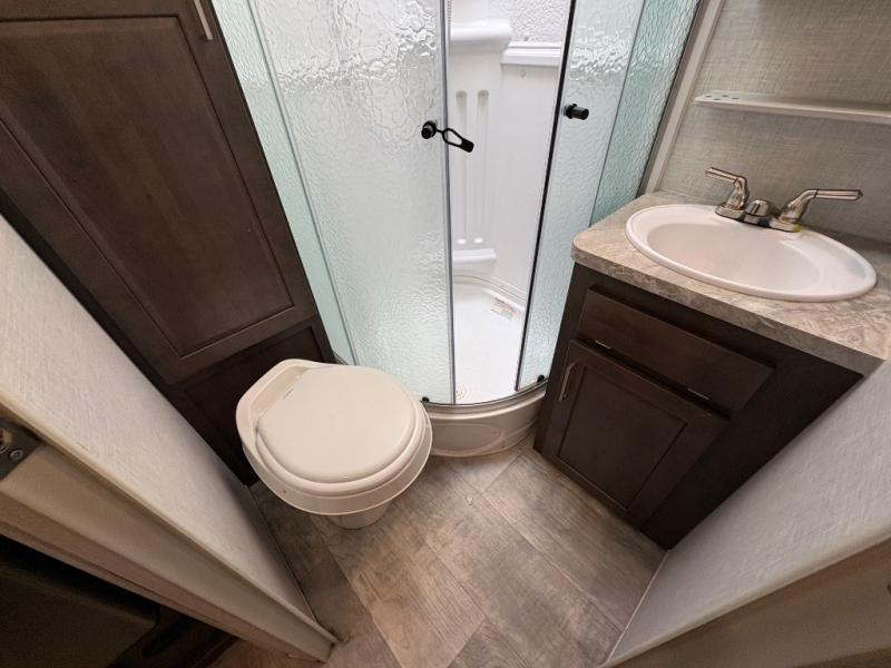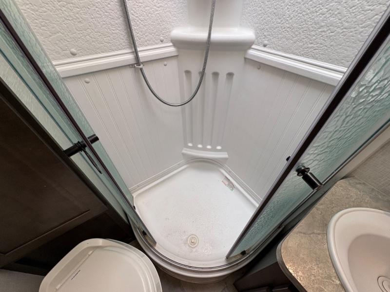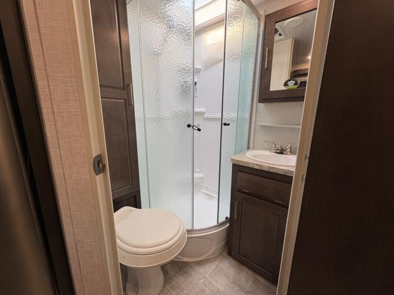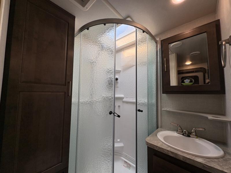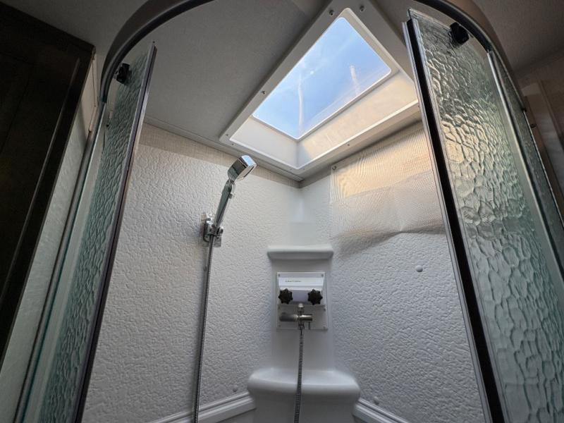- Full bathroom with shower and skylight for added headroom