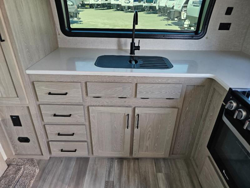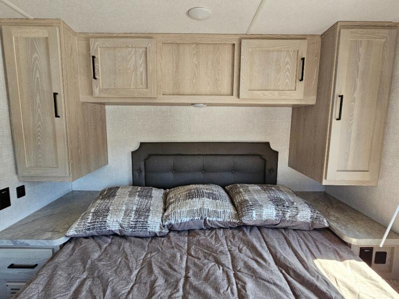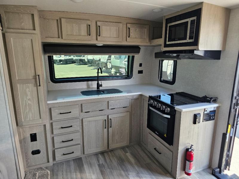 This lightweight, easy-to-tow travel trailer is perfect for couples looking to explore with ease. With a front kitchen, rear private bedroom, and outdoor kitchen, the 2506S blends practical design with thoughtful comfort—inside and out.