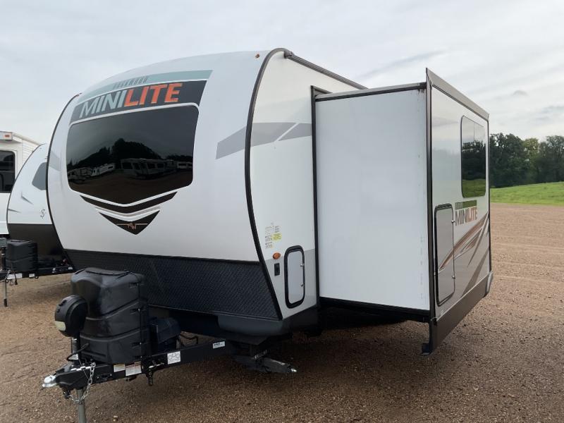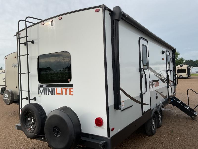 The easy-to-tow, lightweight Rockwood Mini Lite travel trailers by Forest River are the adventurer's dream come true. The six sided aluminum frame, fully laminated one-piece walkable roof, and painted fiberglass front cap with clear coat will provide a strong, durable unit that will last through years of memories and fun. You will appreciate many convenient features, such as the Maxxair fan with a cover, the back-up camera prep, and the Teton All In One WiFi booster with LTE prep and an antenna if you need to get some work done while you're away from home. Each model includes hardwood cabinet doors, a monitor panel switch with the OneControl app, and solid surface kitchen countertops. You will stay entertained on those rainy days with the multizone stereo with DVD, CD, AM/FM and Bluetooth control, and there are outdoor speakers so you will be the life of the campground. Choose your favorite Rockwood Mini Lite layout today!