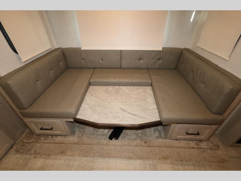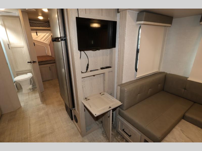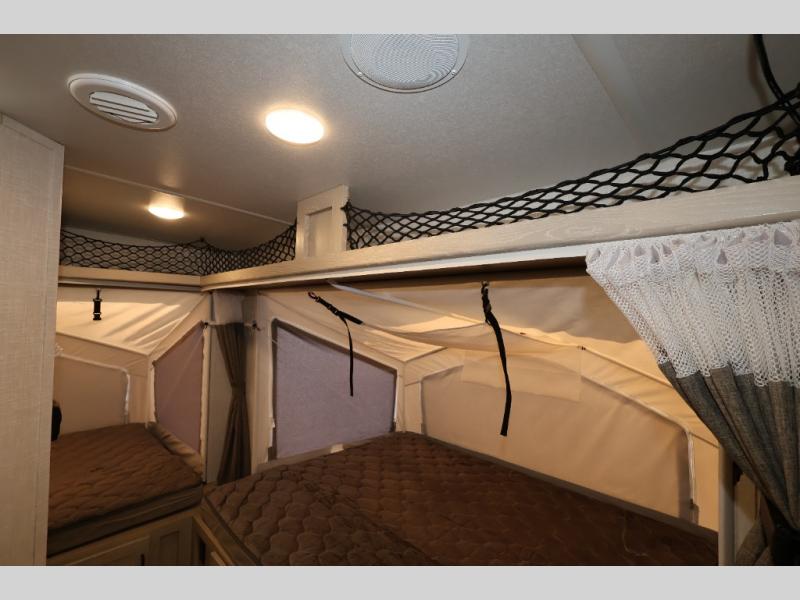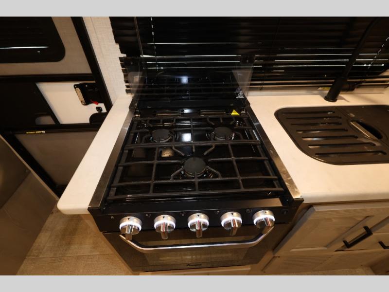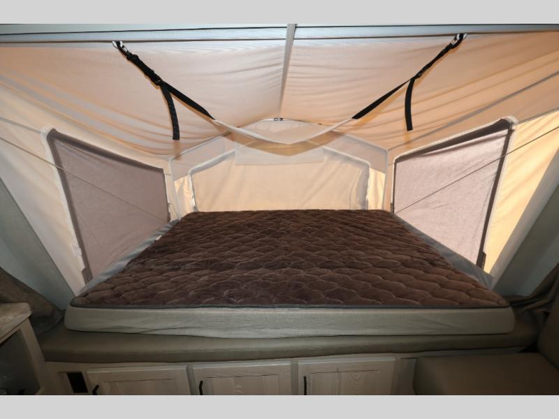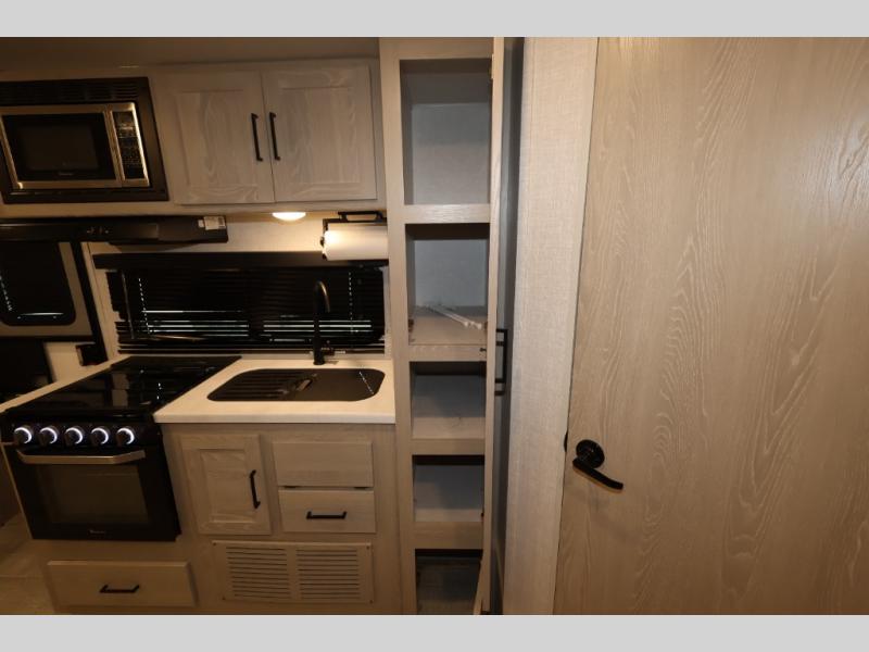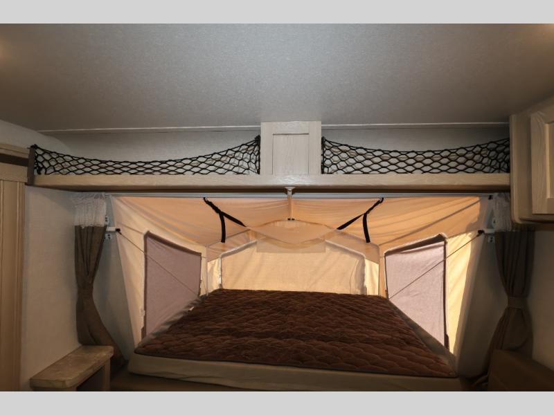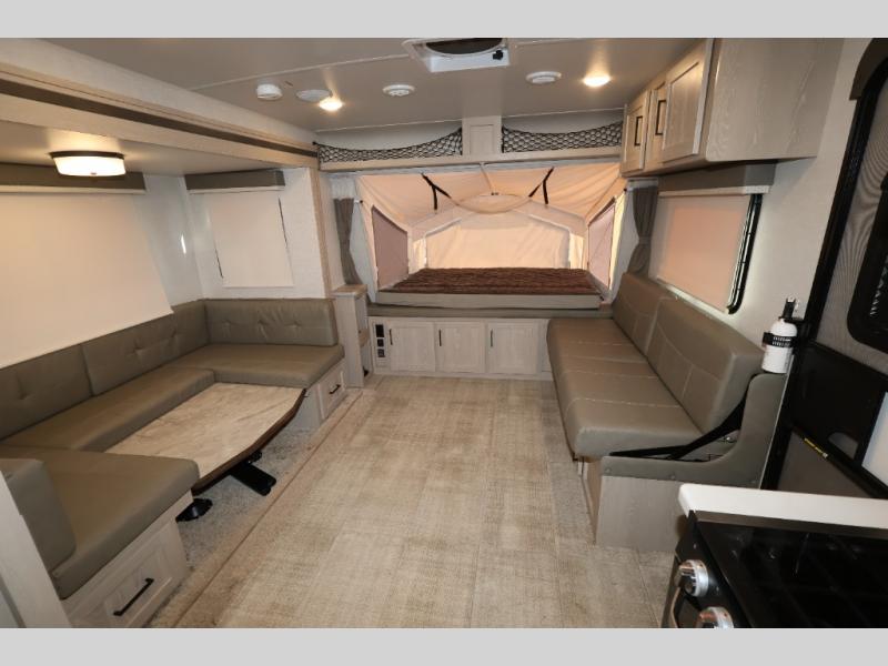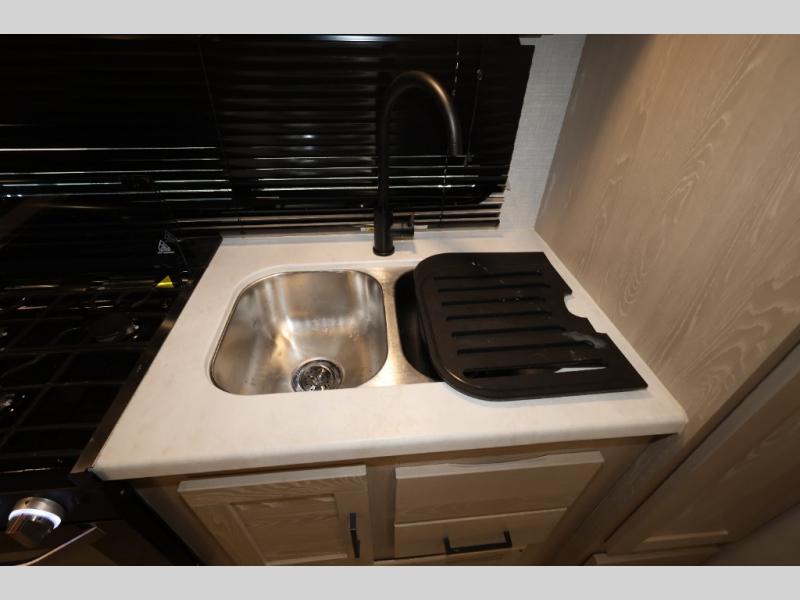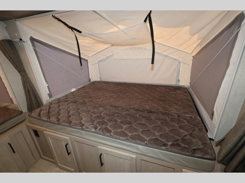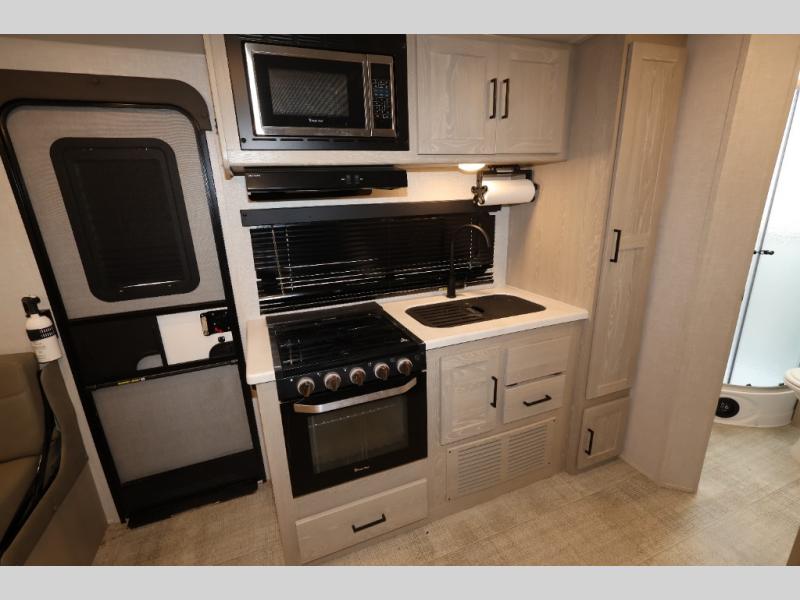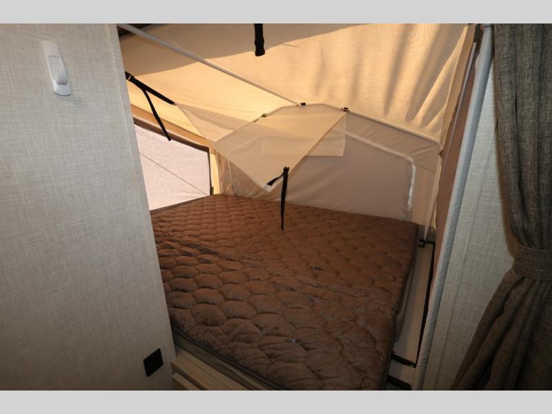 With any Rockwood Roo expandable travel trailer by Forest River you will enjoy smooth towing thanks to the torsion axle, Rubber-Ryde suspension, the easy lube axles and Nev-R-Adjust brakes, and the Goodyear Endurance tires. The key-Alike locks provide easy access in and out of your trailer, and each model includes a Teton all-in-one WiFi booster with LTE prep and an antenna for all your connection needs. Each model is constructed with a vacuum laminated one-piece roof and walls, an enclosed underbelly, and frameless windows for a more sleek look. You will enjoy many interior comforts, including hardwood cabinet doors and drawer fronts, pleated night shades, a bunk/fan light combo with each bed, and much more!