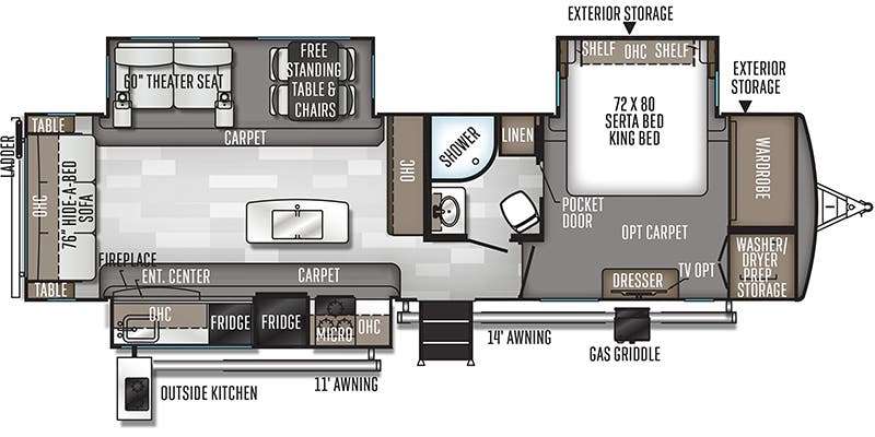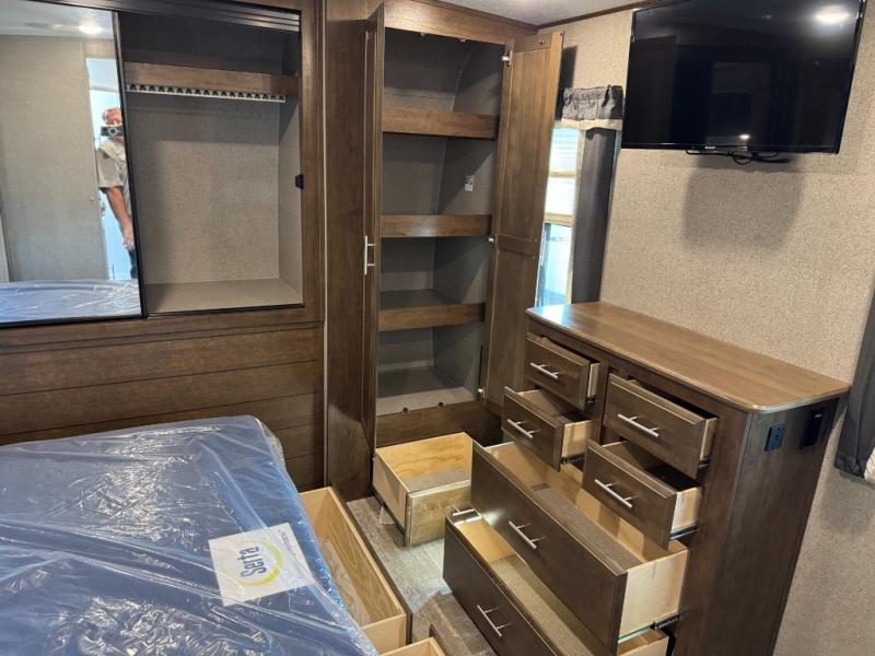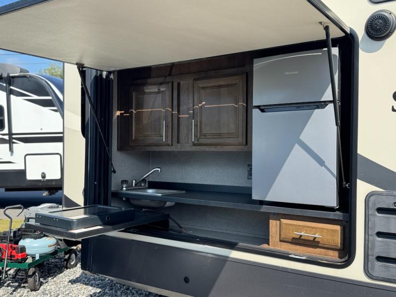 Inside, stretch out on the king-sized bed with a brand-new mattress, catch your favorite shows on two flat-screen TVs, and enjoy a spacious layout perfect for relaxing or entertaining. Love cooking outdoors? The exterior cooking center keeps the fun outside on those perfect evenings.