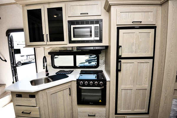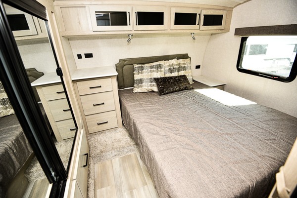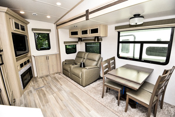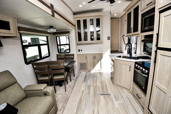 Comfortable, lightweight, fun, and accommodating are just a few of the words that you could use to describe the Forest River Rockwood Ultra Lite fifth wheel and travel trailer! Some of the other words you could use are stylish and dependable. The thermostatically controlled heated holding tanks and enclosed underbelly will keep your unit protected from the cold, and the six-sided aluminum cage construction and surface-coated steel I-beam frame deliver a strong base for everything to be built upon. Radius roofs with interior vaulted ceilings provide an open environment, and the exterior also has an outside shower and speakers for extra convenience.