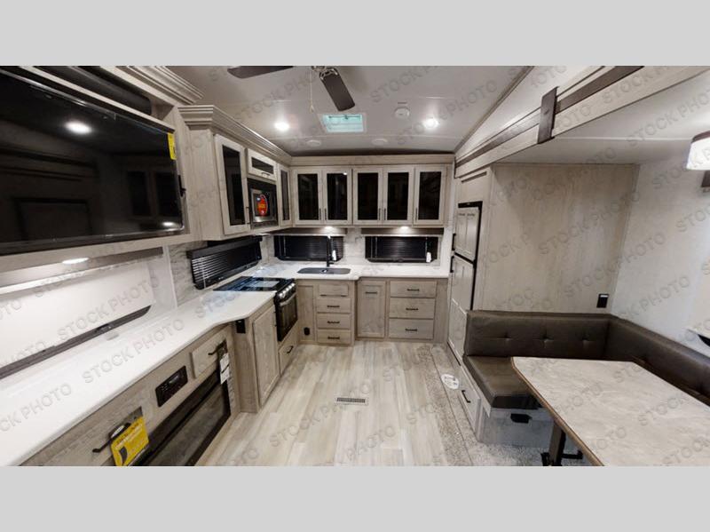 The chef of your group is going to love camping in this Forest River Rockwood Ultra Lite fifth wheel that has a rear kitchen! There is plenty of counter space for them to create their best meals, and the full row of cabinets on the rear wall creates lots of storage space for all of the dishes. The 44" x 81" king U-shaped dinette is the perfect place for you to enjoy your meals or play some card games while you enjoy the comforts of the fireplace across from it. The front master suite features a queen-size bed for you to enjoy a good night's rest, and if you need more sleeping spaces for your guests, then you can transform the 60" hide-a-bed sofa and even the dinette!