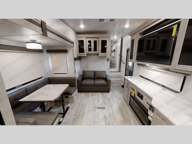 Comfortable, lightweight, fun, and accommodating are just a few of the words that you could use to describe the Forest River Rockwood Ultra Lite fifth wheel and travel trailer! Some of the other words you could use are stylish and dependable. The thermostatically controlled heated holding tanks and enclosed underbelly will keep your unit protected from the cold, and the six-sided aluminum cage construction and surface-coated steel I-beam frame deliver a strong base for everything to be built upon. Radius roofs with interior vaulted ceilings provide an open environment, and the exterior also has an outside shower and speakers for extra convenience.