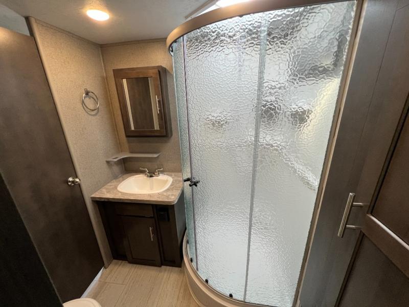 Comfortable, lightweight, fun, and accommodating are just a few of the words that you could use to describe the Forest River Rockwood Ultra Lite fifth wheel and travel trailer! Some of the other words you could use are stylish and dependable. The thermostatically controlled heated holding tanks and enclosed underbelly will keep your unit protected from the cold, and the six-sided aluminum cage construction and surface-coated steel I-beam frame deliver a strong base for everything to be built upon. Radius roofs with interior vaulted ceilings provide an open environment, and the exterior also has an outside shower and speakers for extra convenience.
