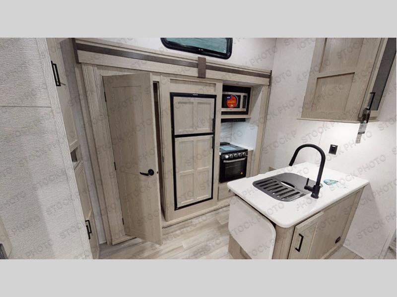 Comfortable, lightweight, fun, and accommodating are just a few of the words that you could use to describe the Forest River Rockwood Ultra Lite fifth wheel and travel trailer! Some of the other words you could use are stylish and dependable. The thermostatically controlled heated holding tanks and enclosed underbelly will keep your unit protected from the cold, and the six-sided aluminum cage construction and surface-coated steel I-beam frame deliver a strong base for everything to be built upon. Radius roofs with interior vaulted ceilings provide an open environment, and the exterior also has an outside shower and speakers for extra convenience.