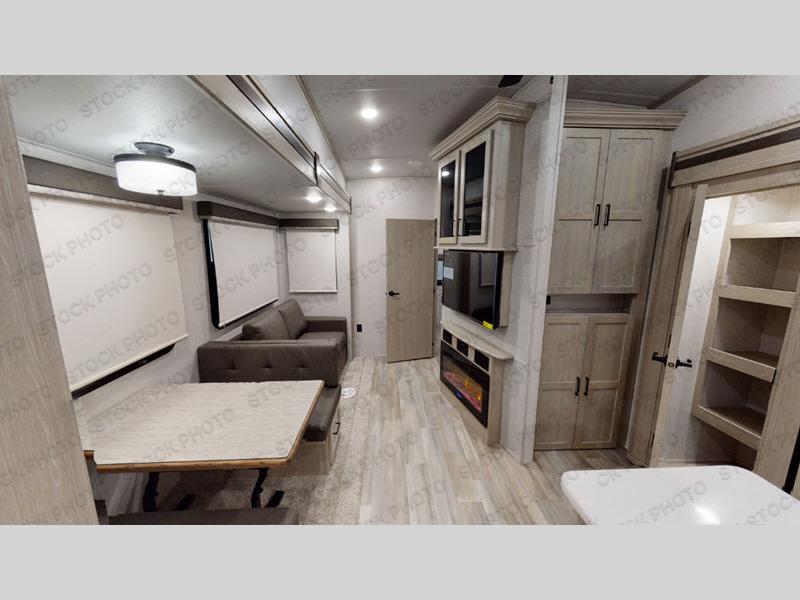 Your kids will love camping in this Forest River Rockwood Ultra Lite fifth wheel! It features a decked-out rear bunkhouse with two upper bunks, a 67" hide-a-bed sofa, and a half bathroom. Your kids will also love all of the snacks that you can bring along and store in one of the two pantries, and you can use the countertop extension for additional prep space as you make dinner. What better way to relax at night than to sit on the 60" hide-a-bed sofa in front of the fireplace and watch your favorite movie on the LED TV, or you can head outside and play games underneath the 18' power awning with LED lights after you grab a table and chair!