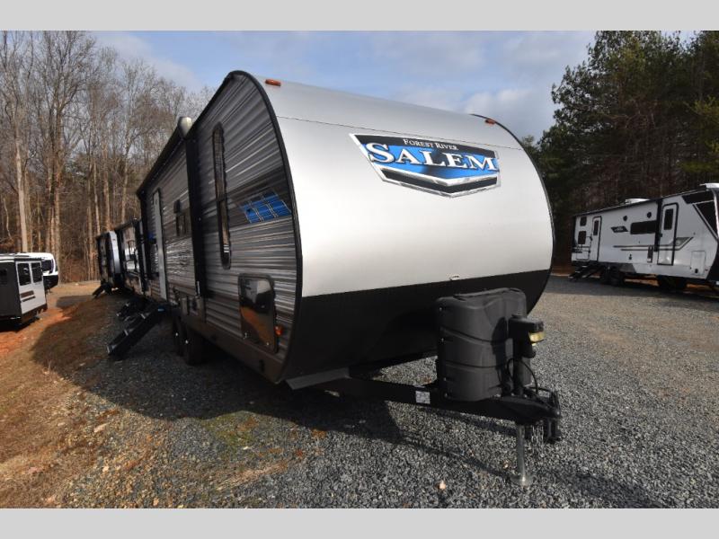 Enjoy years and years of memories with any one of these Forest River Salem travel trailers! They are built with a one piece, SuperFlex roof, a powder coated I-beam frame, and an aerodynamic front radius profile for an easier tow. The triple seal slide out system prevents water from seeping inside and keeps it outside where it belongs. New to 2021 is an outside kitchen re-design with Stow N Go containers on applicable models, a new fabric for roller shades, and new high gloss exterior metal. The Salem Best In Class Value Package includes upgraded designer furniture, seamless countertops with no T-mold, and two zone residential soundbars with FM, Bluetooth, HDMI and USB. You will also appreciate the heated and enclosed Accessi-Belly with removable underbelly panels, the power tongue jack with an LED light, the designated CPAP storage, plus many more convenient features. Come see all of the other new features today!