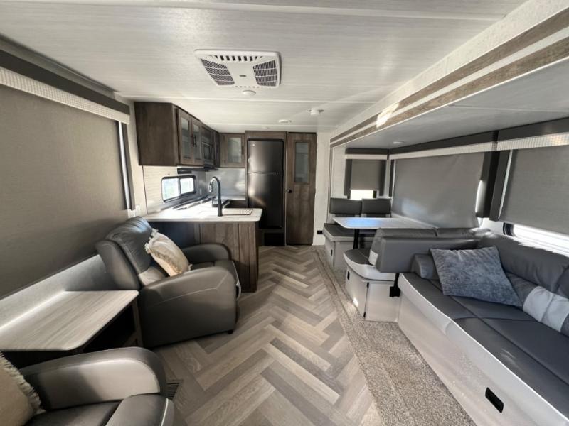 The Forest River Salem travel trailers come in a variety of layouts and designs because families come in a variety of shapes and sizes! Each model has been customized with the very best features so that you and your family always feel cared for when you travel! You will find panoramic windows with cross ventilation so that your surroundings can welcome you even while you remain indoors, and the built-in 30" electric fireplace heater will keep you comfortable, just like at home. The pass-through storage will allow you to keep extra items stored away so that they are ready when you need them, and a Bluetooth FM stereo with soundbar will create the perfect party atmosphere while you're camping.