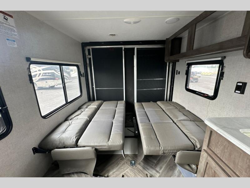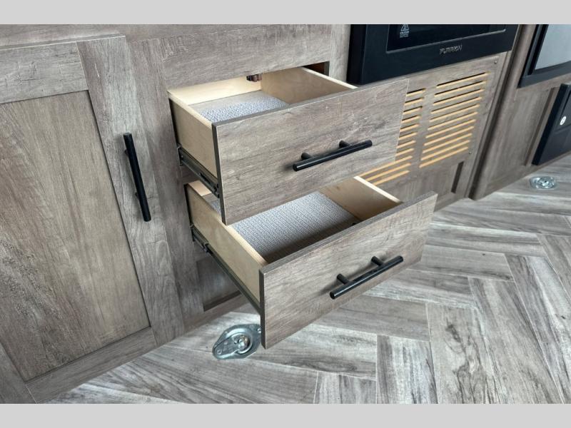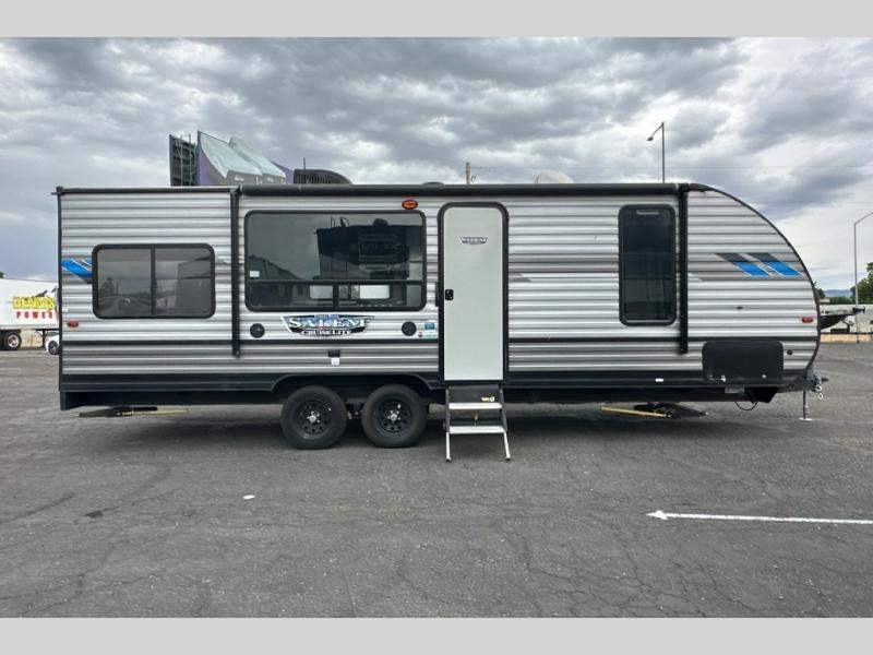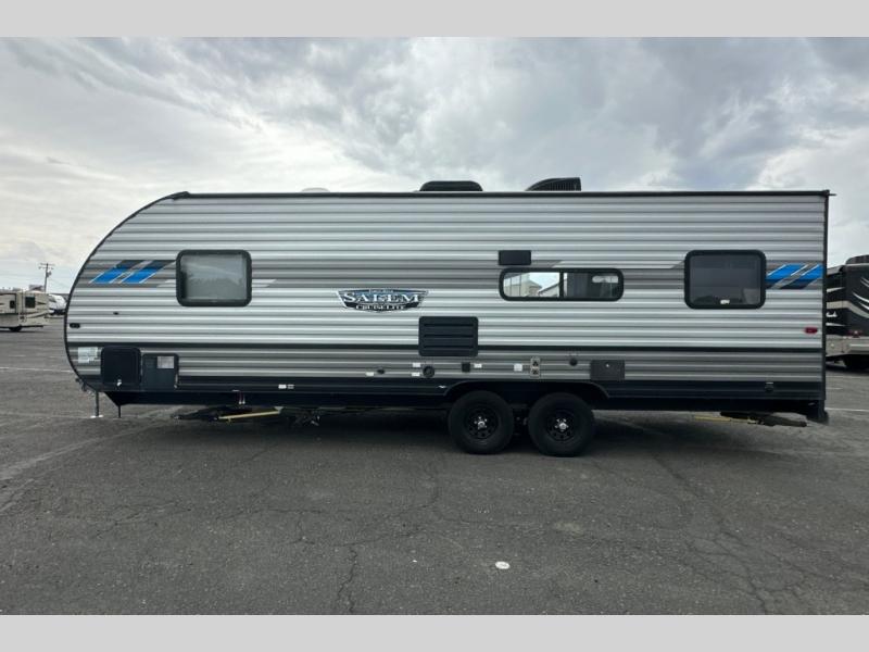Each one of these Forest River Salem Cruise Lite toy haulers offer quality and value with a list of great features! Each model comes with the Best in Class Value package which includes an upgraded appliance package, true stabilizer jacks with JT StrongArms, USB port package, and Stow N Go storage below the bed and dinette. The modern cloth roller shades come with AutoStop, and the SolidStep double step ensures you will safely enter the unit. You will enjoy looking out at your beautiful scenery each morning through the extra large panoramic window on the main slide. Check out a model in person today!