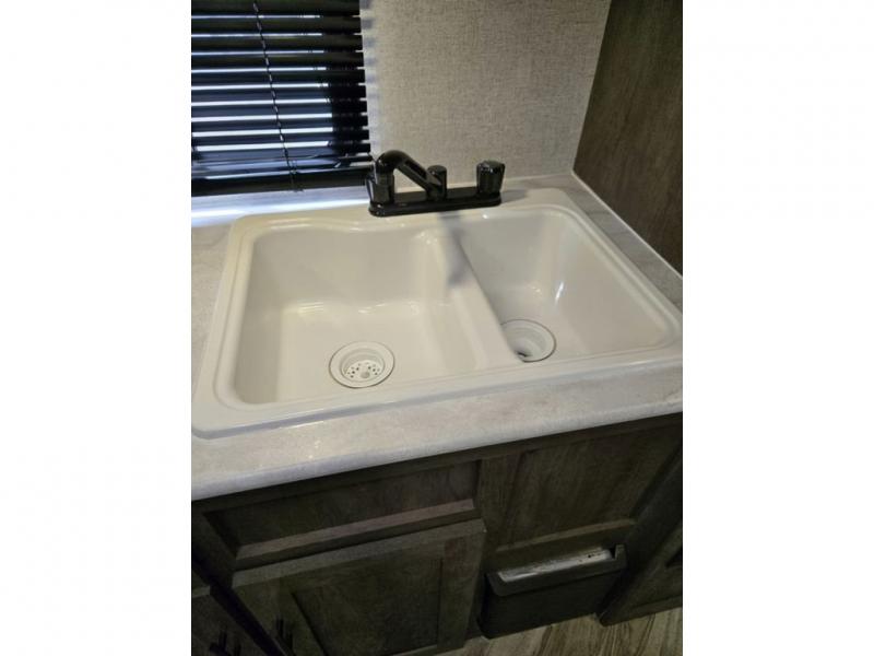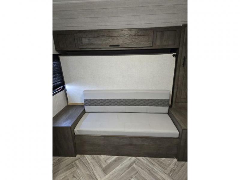 Let all of your adventures be wild with this Salem FSX travel trailer! The U-shaped dinette rests upon a single slide so that it can move out of the way and allow you to cook freely in the kitchen. You'll appreciate having an additional lounge spot on the sofa when the Murphy bed is folded away during the day, and for fun meal prep in the great outdoors, simply walk outside to the outdoor kitchen where you can grill up some chicken and veggies for dinner. You can also travel confidently knowing that everyone will have a comfortable place to sleep because of the double-size bunks that have been included.