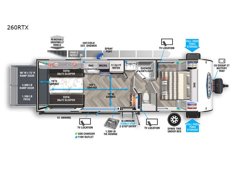 Forest River Salem FSX Platinum Edition toy hauler 260RTX highlights: