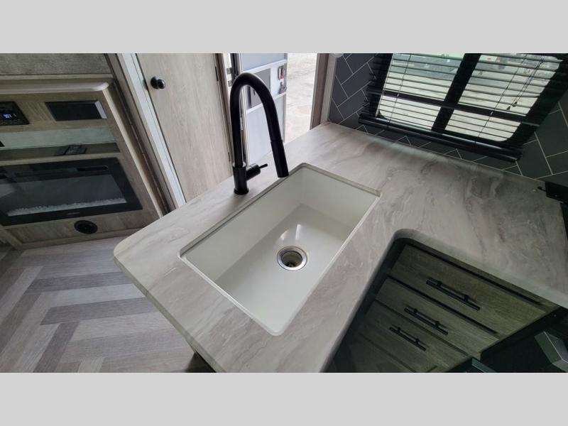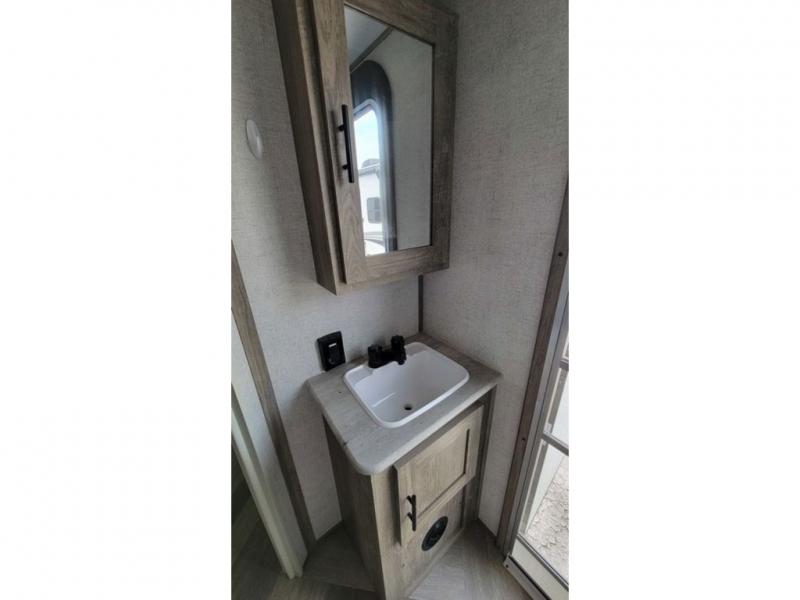 You will experience better gas mileage and a smoother ride with any one of these Forest River Salem Hemisphere Hyper-Lyte travel trailers! The stunning interiors include Herringbone designer's choice congoleum flooring for an easy clean up, rich wood tones with the Hudson wood agreeable grain cabinetry, and yacht trim ceiling finishes. With a high efficiency A/C cooling system, you can be sure to stay cool even on the hottest summer day. The mandatory Upgraded Options package includes an outside shower to rinse the mud off before entering, a central switch center, and an ivory performance colored exterior fiberglass with smoked quartz metallic accents to turn heads while at the campsite!