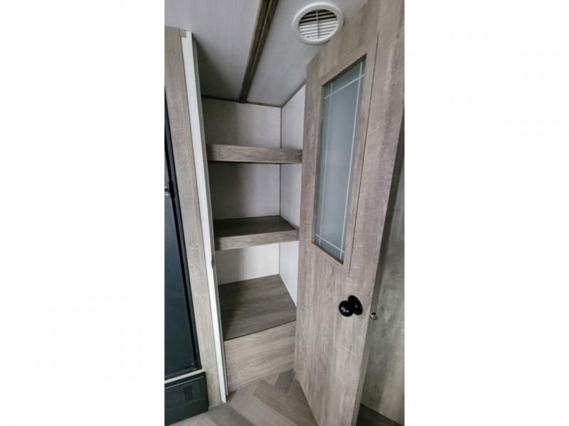 This Salem Hemisphere Hyper-Lyte travel trailer has it all: two entry doors, a private bedroom for you, double-size bunks for the kids or your friends, plus a large slide out for more interior space! After you've explored for the day, come back to this trailer to prepare dinner on the three-burner range or in the microwave. The rear corner bath includes a walk-in shower with skylight and it's own exterior entry door, so you can easily use the restroom and get back outside without going through the whole trailer. And the exterior offers a Texas-size pass-through storage, a 16' awning, and an outside kitchen/bar to enjoy outdoors.