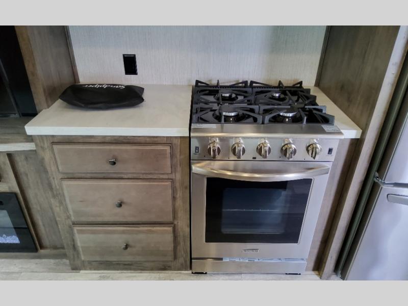 The professional details, outstanding quality, and elegant decor that have been incorporated into each of the Sandpiper fifth wheels by Forest River will absolutely amaze you! Extra large picture windows have been installed throughout the interior so that you can feel connected to the beautiful outdoor scenery from anywhere inside the Sandpiper, and the recessed residential LED lighting will shine brightly and efficiently to illuminate the interior once the day's light has faded. The docking station makes for an easy winterization and the hydraulic front jacks makes it easy to set up once you have arrived at your destination!