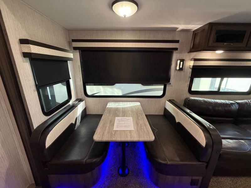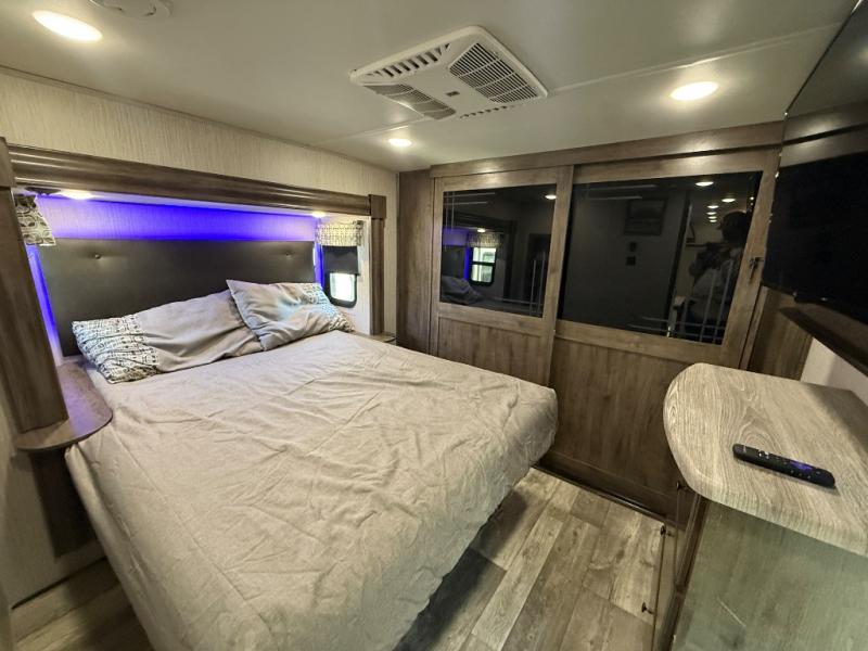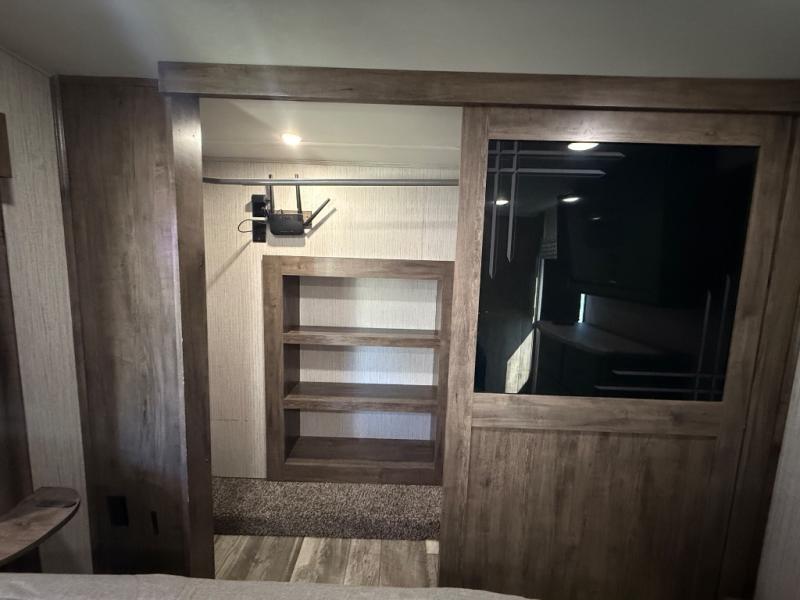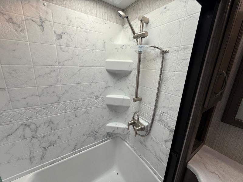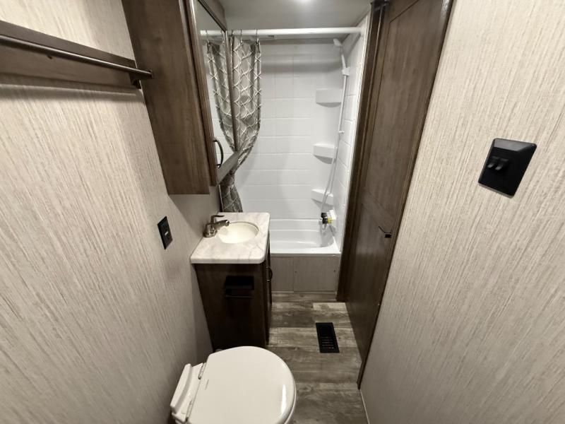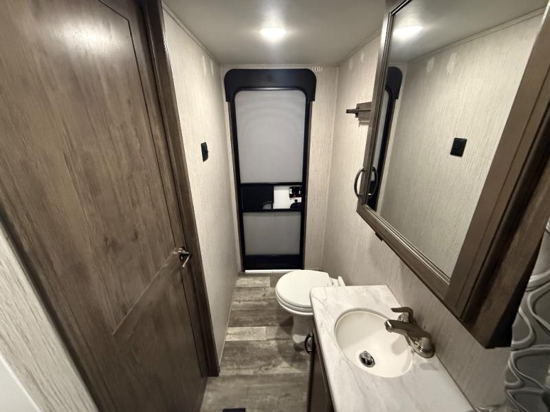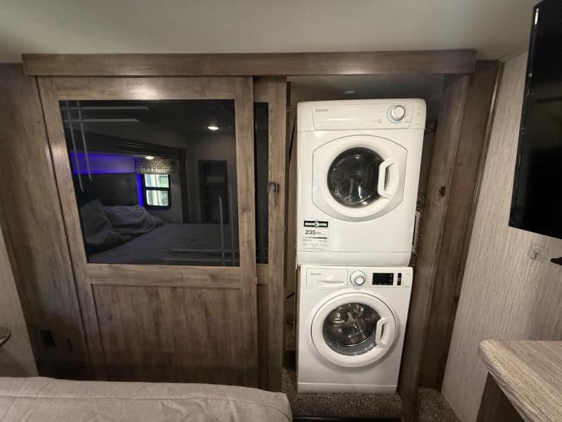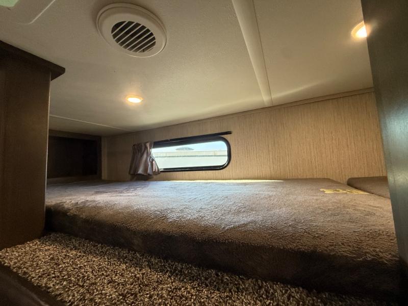 For the ultimate family-friendly fifth wheel, you will want this four-slide Sandpiper fifth wheel. With two entry doors, you can easily access the inside of this model from the rear or the front. Your kids will enjoy their own space with the bunkhouse suite that has its very own full bathroom, as well as a loft above. Outside you can enjoy the shade from the 15' electric awning with LED lights and the convenience of the exterior kitchen with a bumper-mount swivel gas grill.
