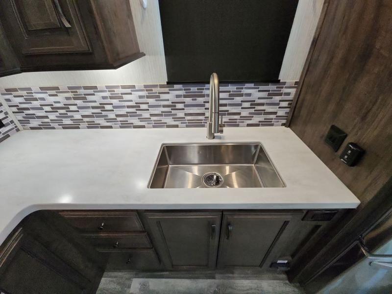 The professional details, outstanding quality, and elegant decor that have been incorporated into each of the Sandpiper fifth wheels by Forest River will absolutely amaze you! Extra large picture windows have been installed throughout the interior so that you can feel connected to the beautiful outdoor scenery from anywhere inside the Sandpiper, and the recessed residential LED lighting will shine brightly and efficiently to illuminate the interior once the day's light has faded. The docking station makes for an easy winterization and the hydraulic front jacks makes it easy to set up once you have arrived at your destination!