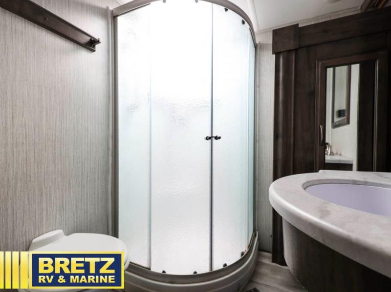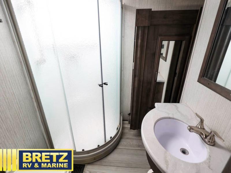 With any Forest River Sandpiper C-Class fifth wheel you will receive superior construction that is built to last the long haul! From the laminated vacuum bonded aluminum sidewalls, the color matched seamless rubber roof, the block foam insulation, and the Underbelly Armor providing full length underbelly protection from decay and erosion. And you will especially appreciate the MORryde entry step as you carry your items inside and outside. A few more features that will impress include extra-large picture windows throughout, upgraded raised panel cabinet doors and designer rails, a residential kitchen faucet, a stainless steel package, and so much more! Make your choice today and start enjoying elegance on your next trip!
