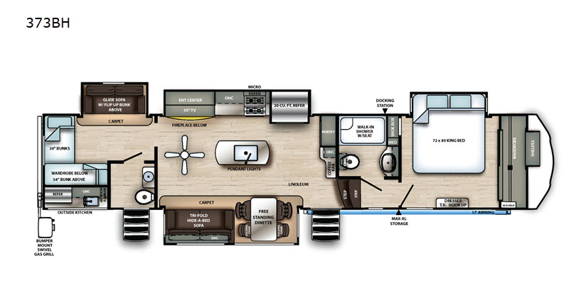 Bunk house, Fireplace, King Bed Oh MyForest River Sierra fifth wheel 373BH highlights: