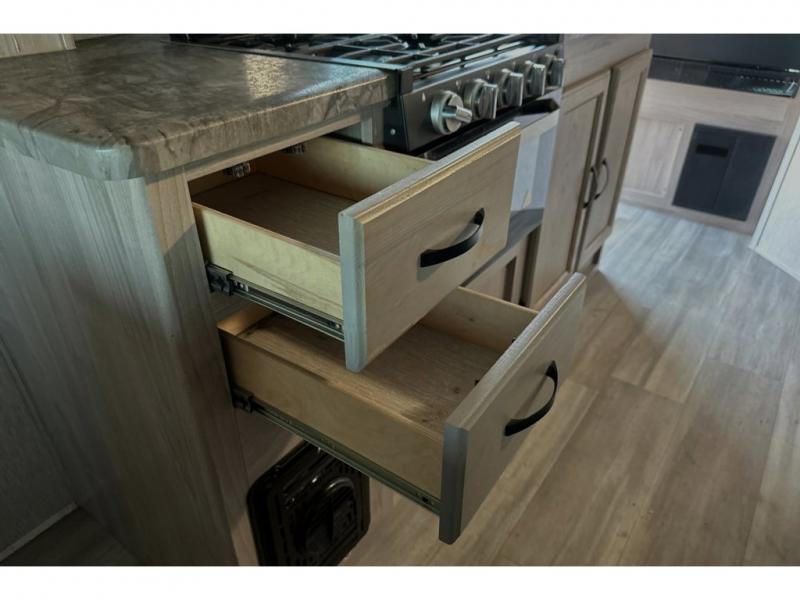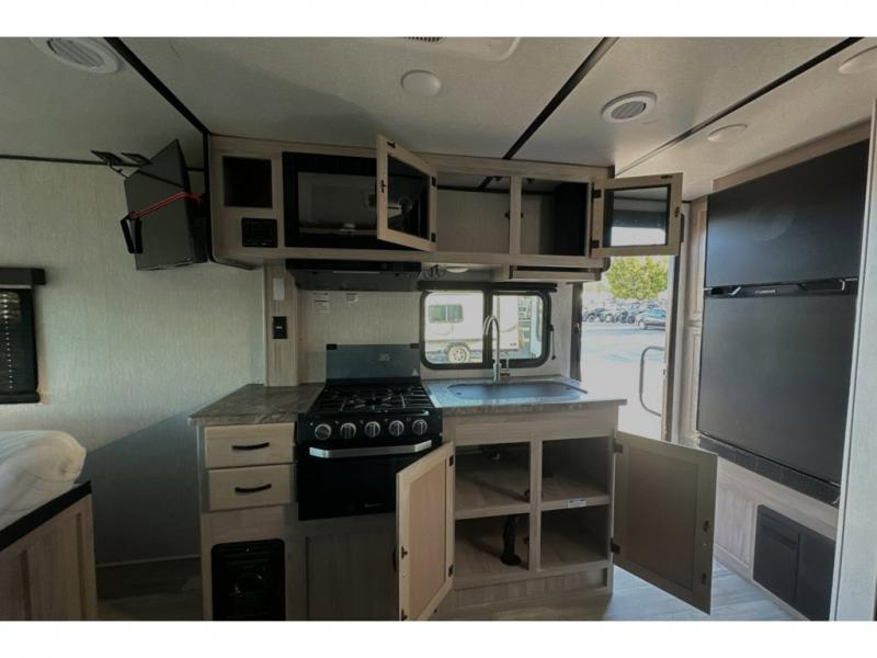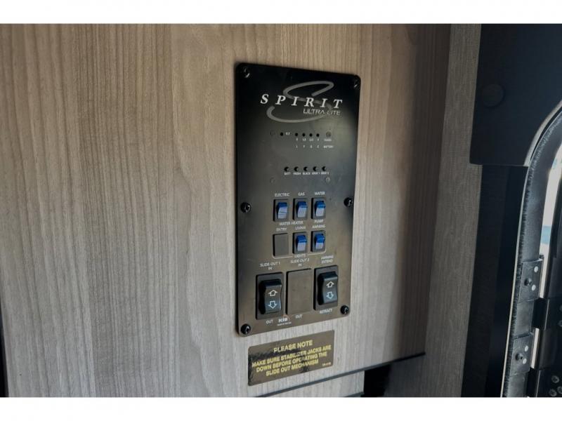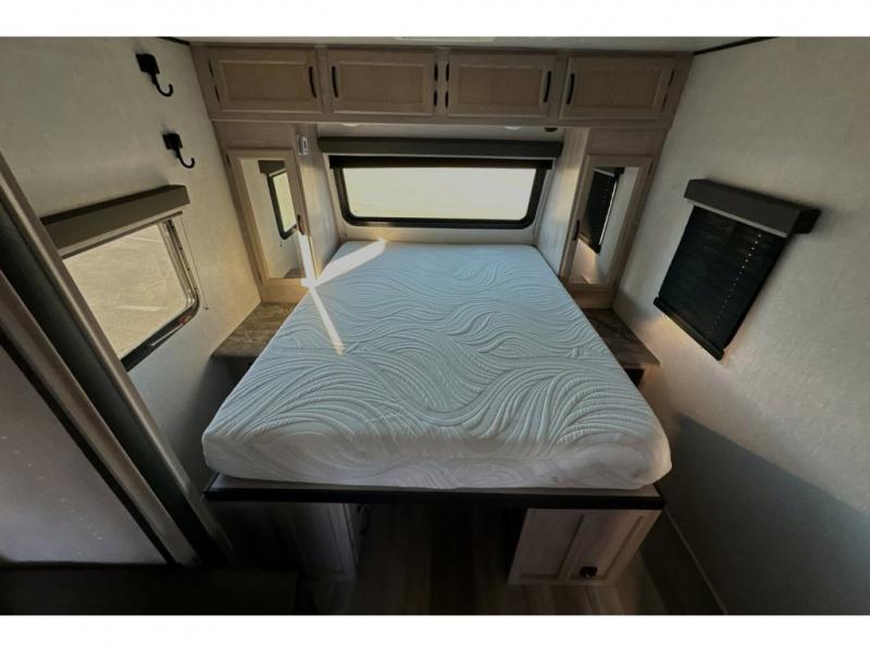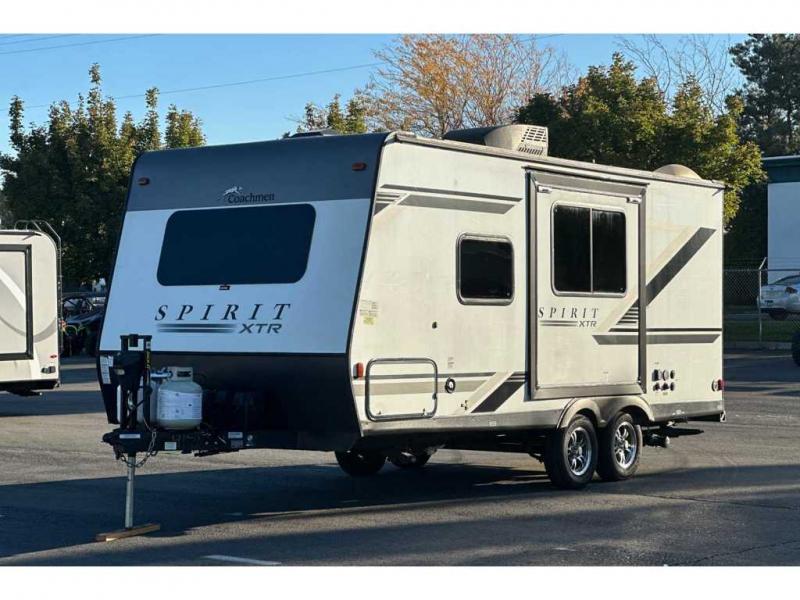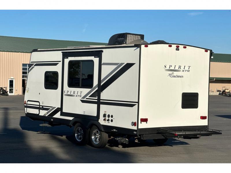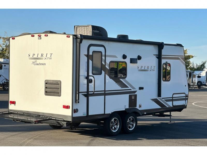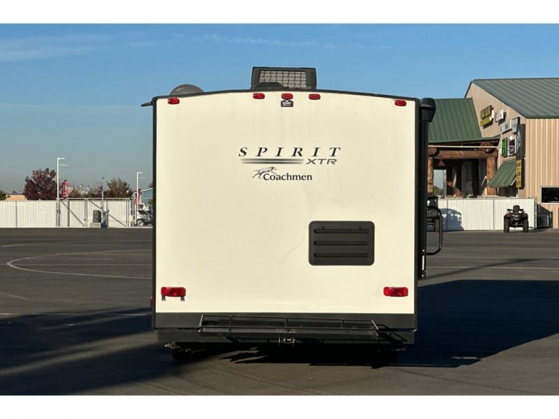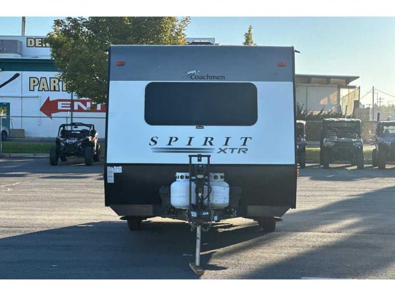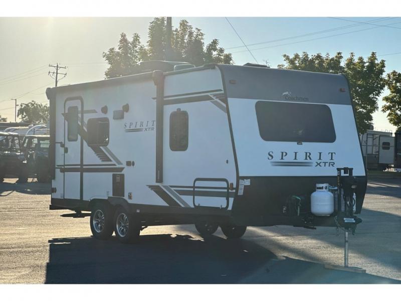 Each Spirit XTR travel trailer by Coachmen is constructed with a laminated, aluminum framed floor, sidewalls and rear wall, plus Azdel composite panels in place of Luaun plywood, and a Tufflex PVC roof membrane to provide a lightweight, sturdy and easy to tow trailer by a smaller tow vehicle. The interior includes lumber core cabinets stiles, mortis and tenon cabinet doors, and seamless thermo foil wrapped countertops for easy care. You will also find the MAX BED storage feature which offers a walk-through area under the bed with drawers, extra storage for pillows, blankets and shoes, plus a padded seat allowing you to easily put on your shoes each morning. A few more features you are sure to appreciate include a wireless phone charger, motion activated floor lights, a battery disconnect switch and a digital level. Make your selection today!