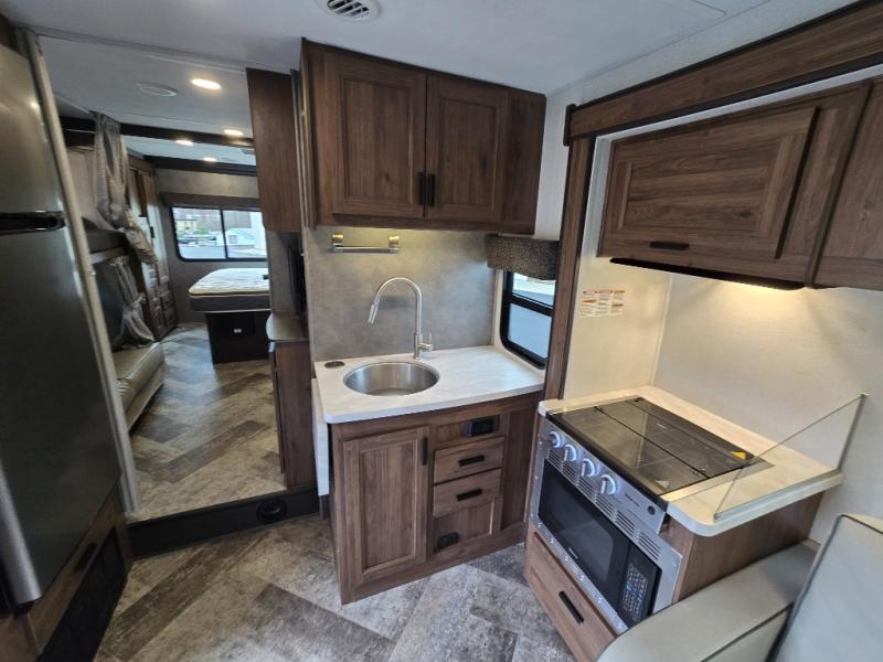 This Sunseeker LE Class C gas motorhome offers a great way to spend your summer traveling. It is perfect for a couple with children or even grandparents that enjoy a few weeks with the grandkids having fun! You will enjoy a spacious interior thanks to the two slides, plus you will find a rear private bedroom in the back for comfortable sleeping. The little ones will enjoy a kid's sofa sleeper and flip-down 28" x 72" bunk opposite the full bath, and the big kids are sure to love the 60" x 80" bunk over the cab. There is ample seating in the main living area with a sofa, a 42" x 68" booth dinette, and eight seatbelts for you and your traveling companions.