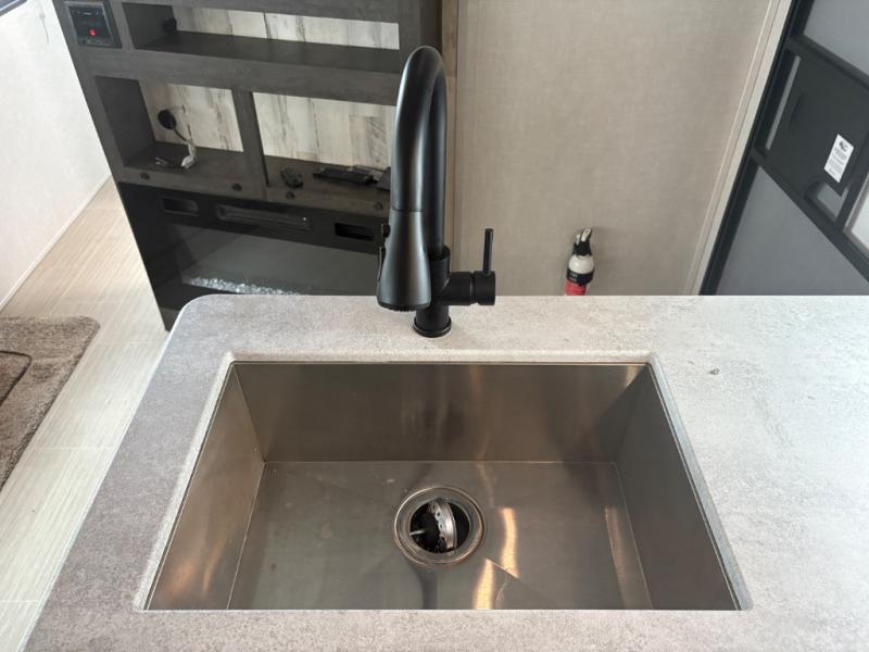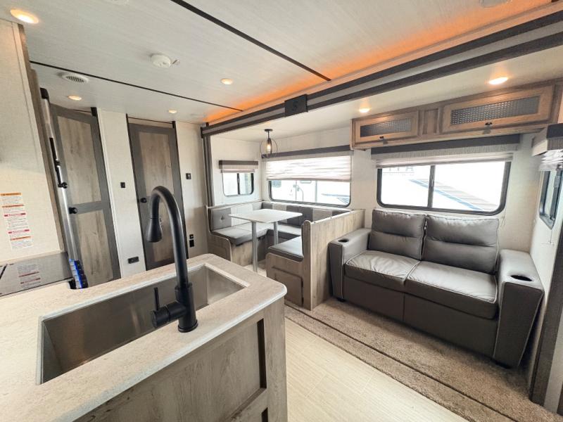 - Main living area with U-shaped dinette and 56" sofa in the slide out